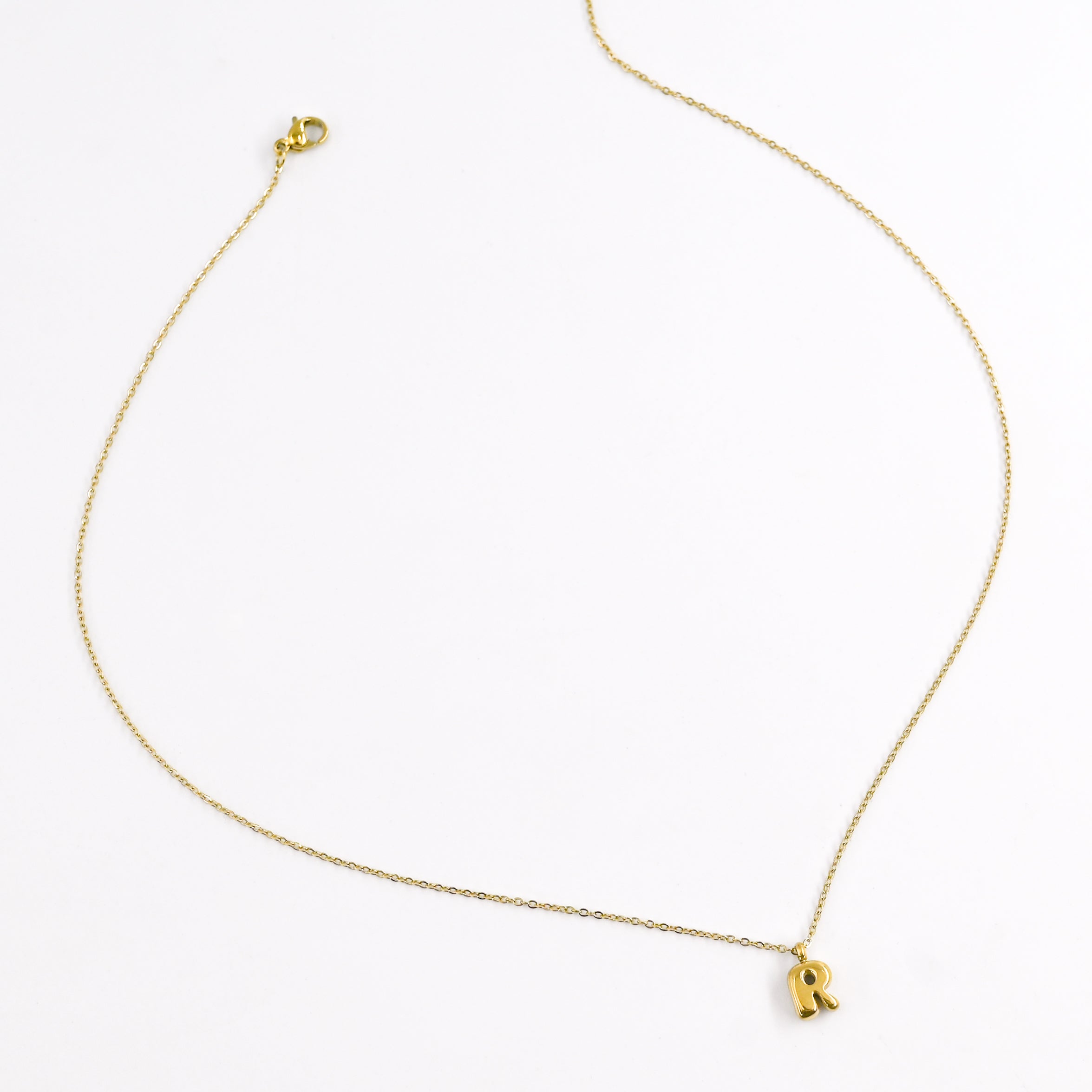 • Collier fin composé d'un pendentif initiale effet ballon, en acier inoxydable