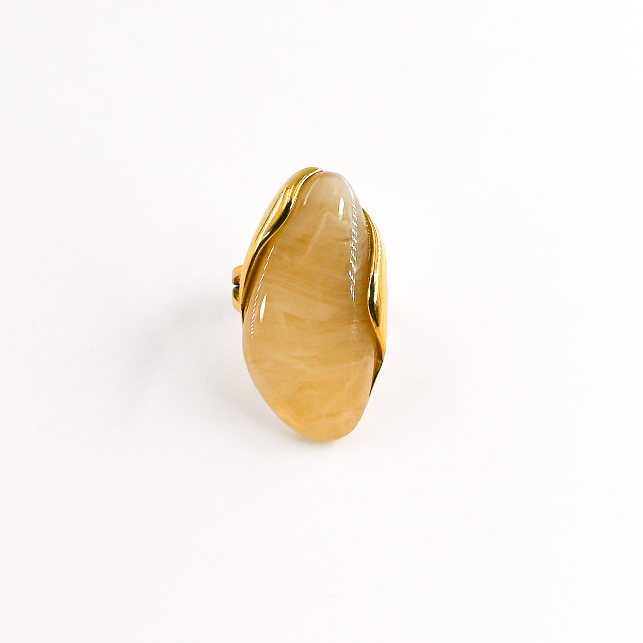 • Bague composée d'une grande pierre blanc/beige marbré, en acier inoxydable