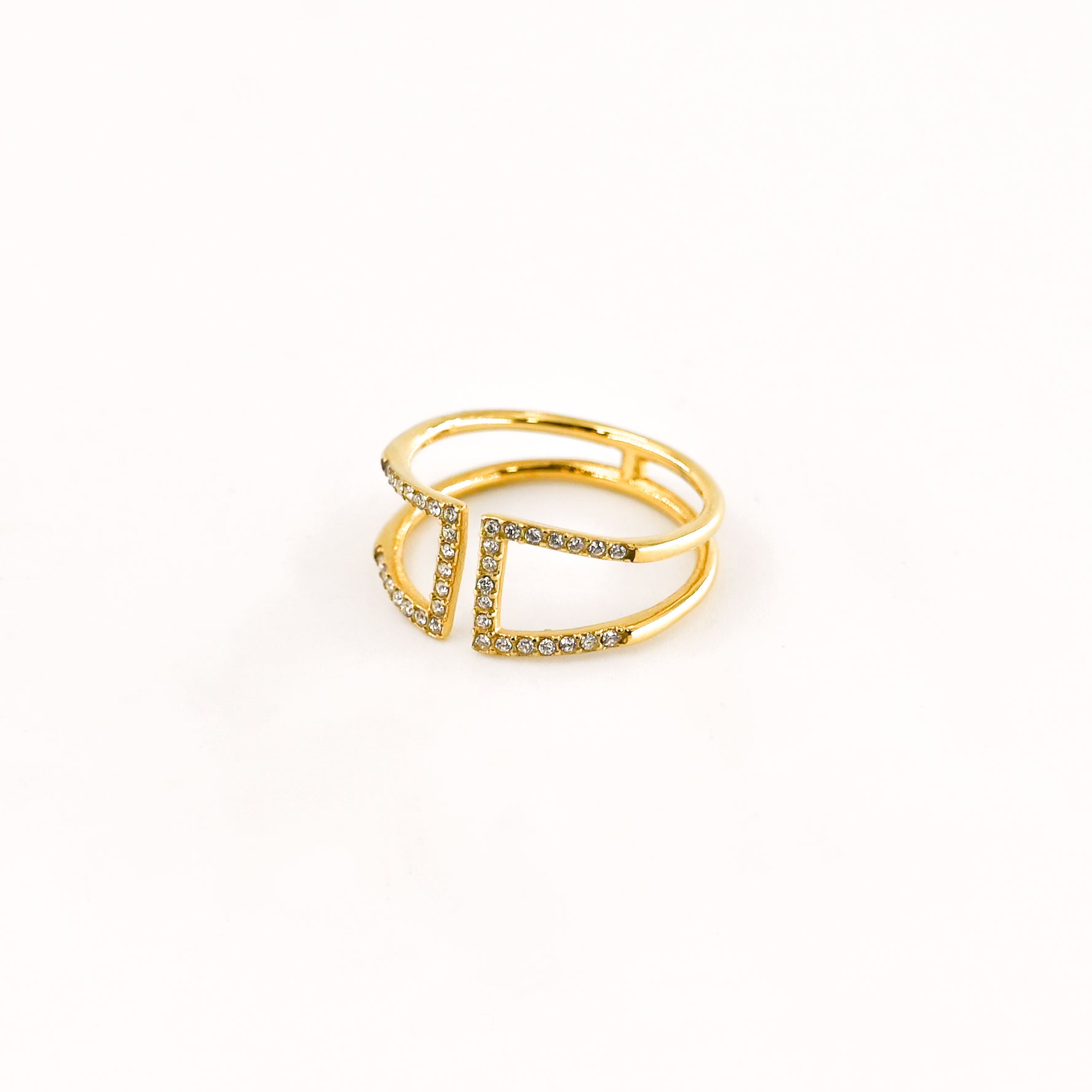 • Bague ajourée ornée de strass blancs, en acier inoxydable