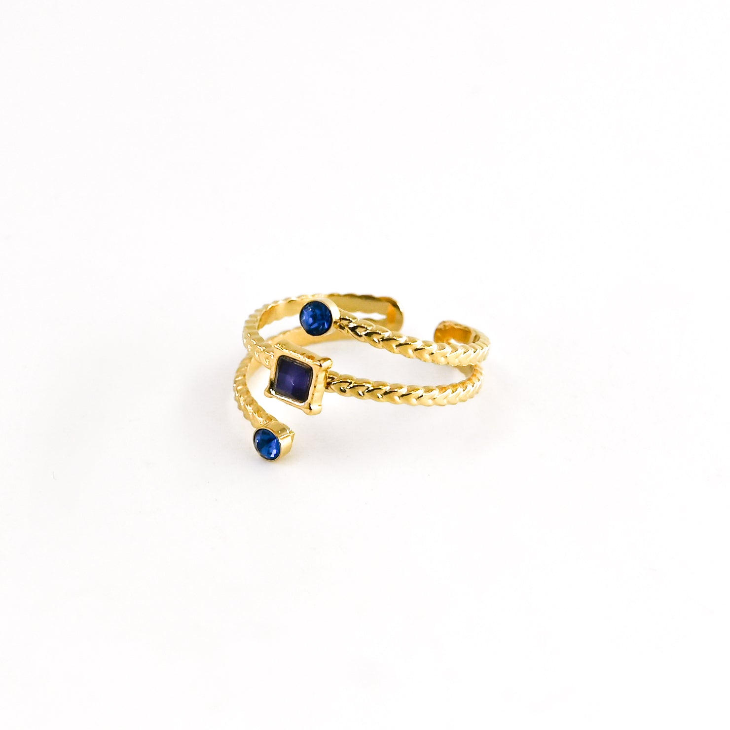 • Bague multirangs composée de 3 strass bleu, en acier inoxydable