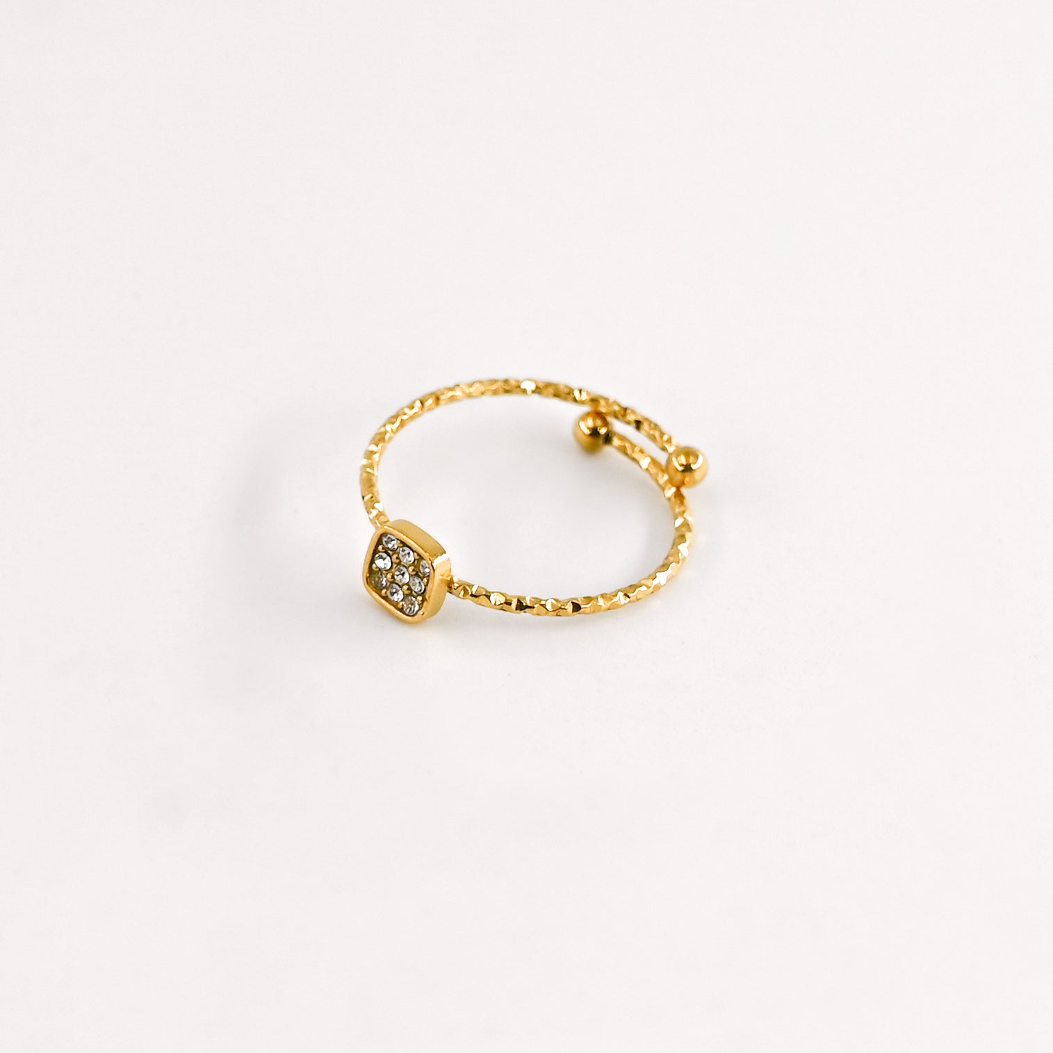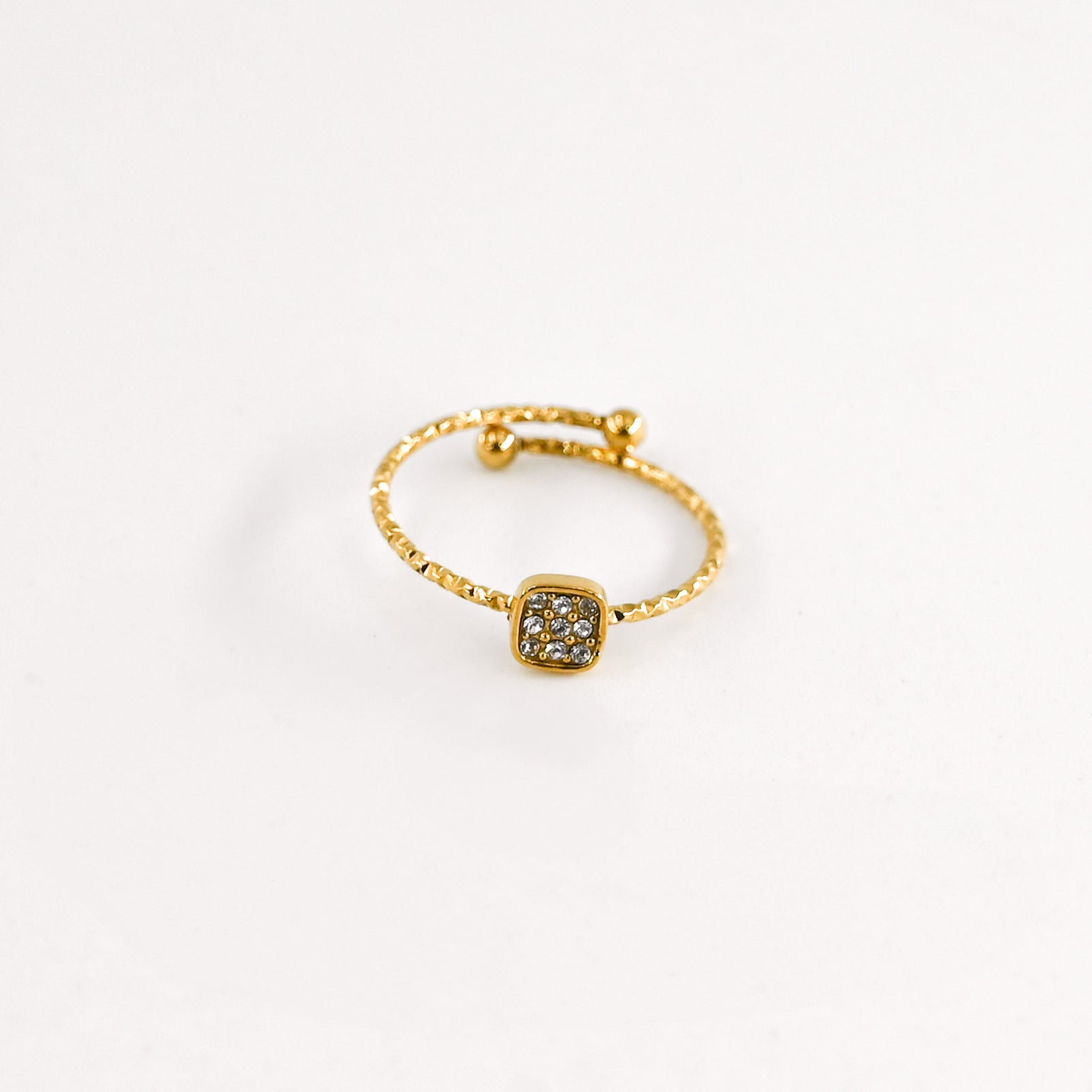 • Bague martelée composée d'un motif carré orné de strass blancs, en acier inoxydable