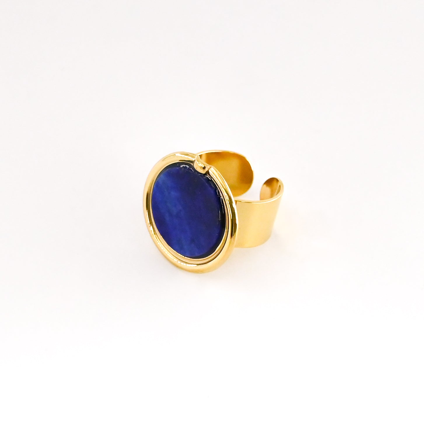 • Bague composée d'un empiècement rond et d'une pierre lapis lazuli, en acier inoxydable
