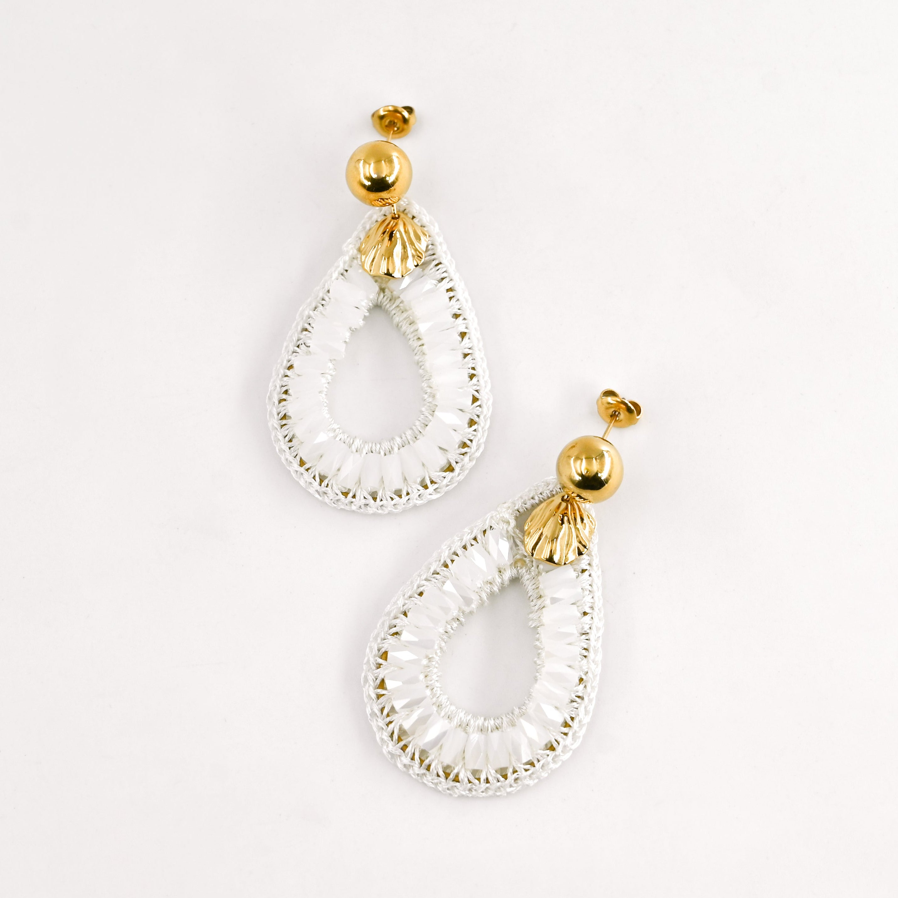 • Boucles d'oreilles pendantes en macramé et petites perles blanches