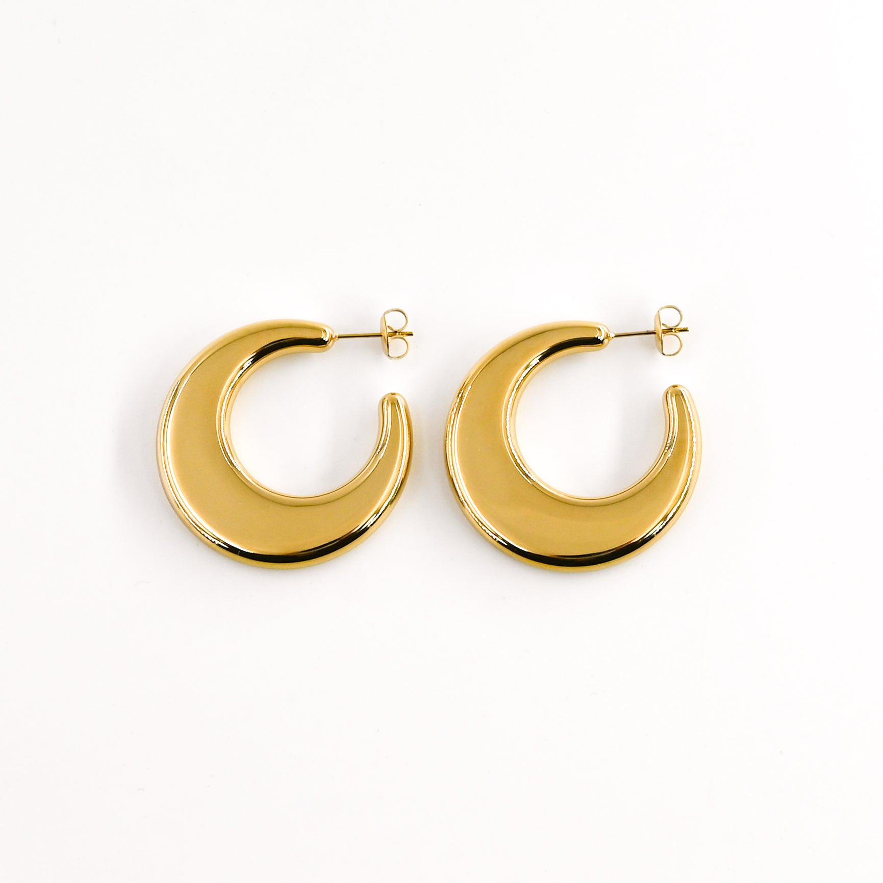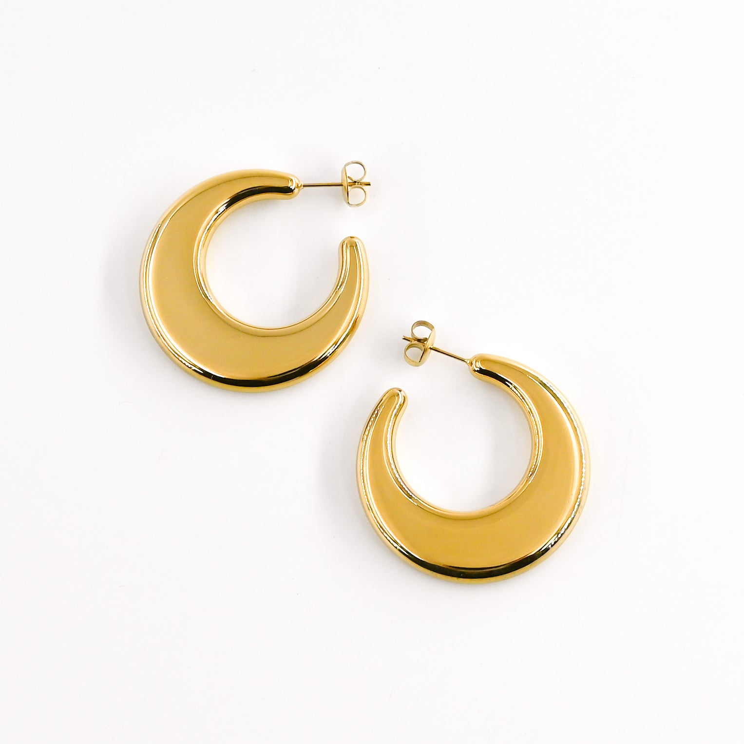 • Créoles plates en forme de quart de lune, en acier inoxydable