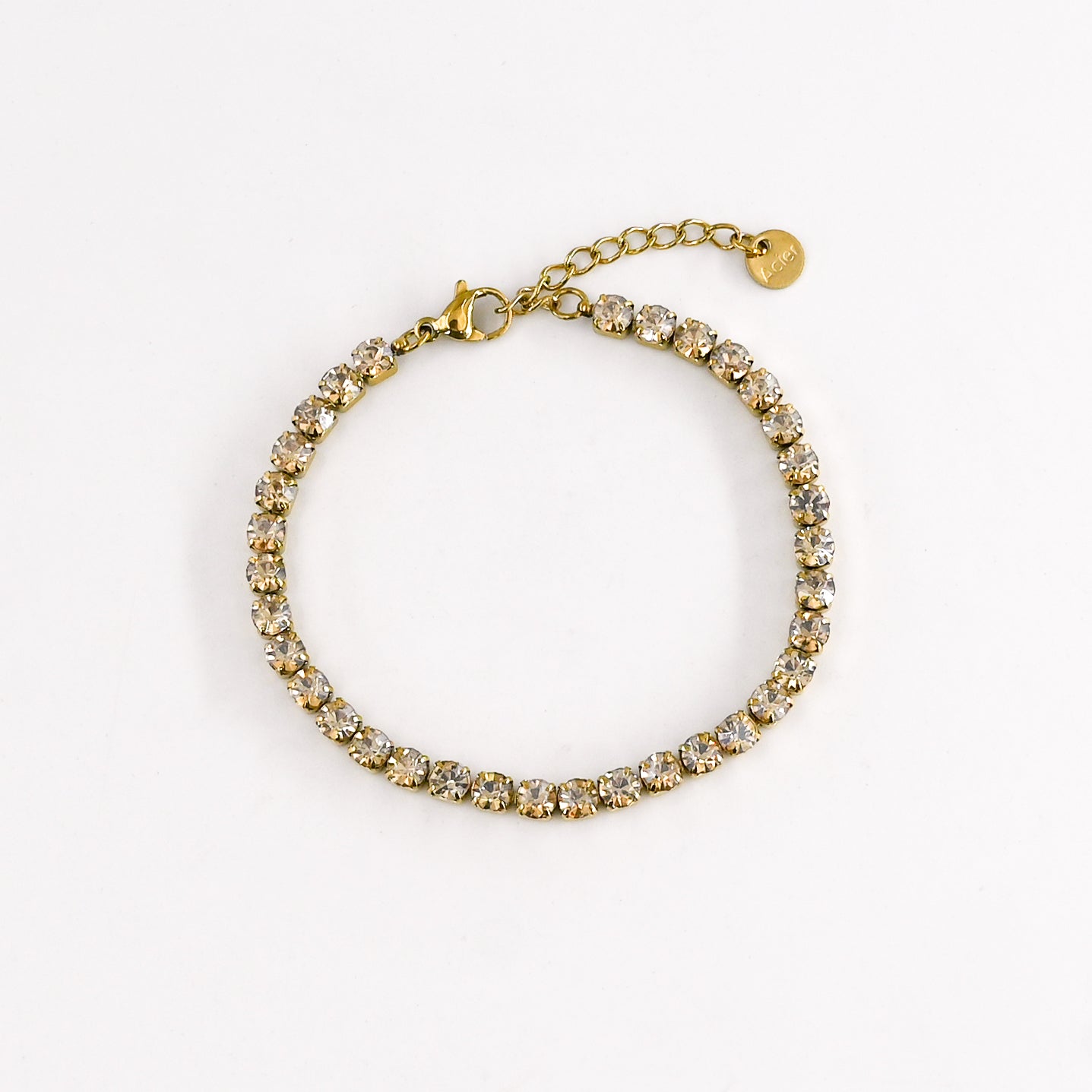 • Bracelet tennis composé de strass rose pâle, en acier inoxydable