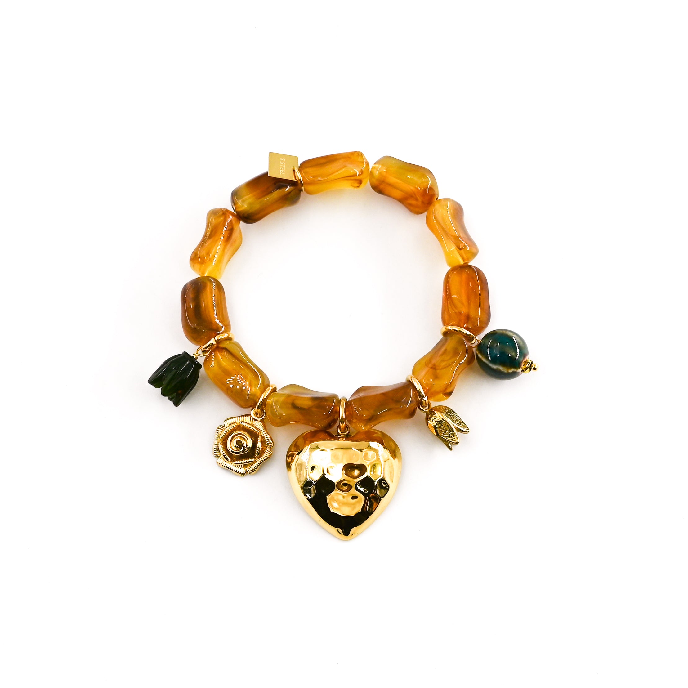 • Bracelet élastique composé de perles marron / kaki et de charm's