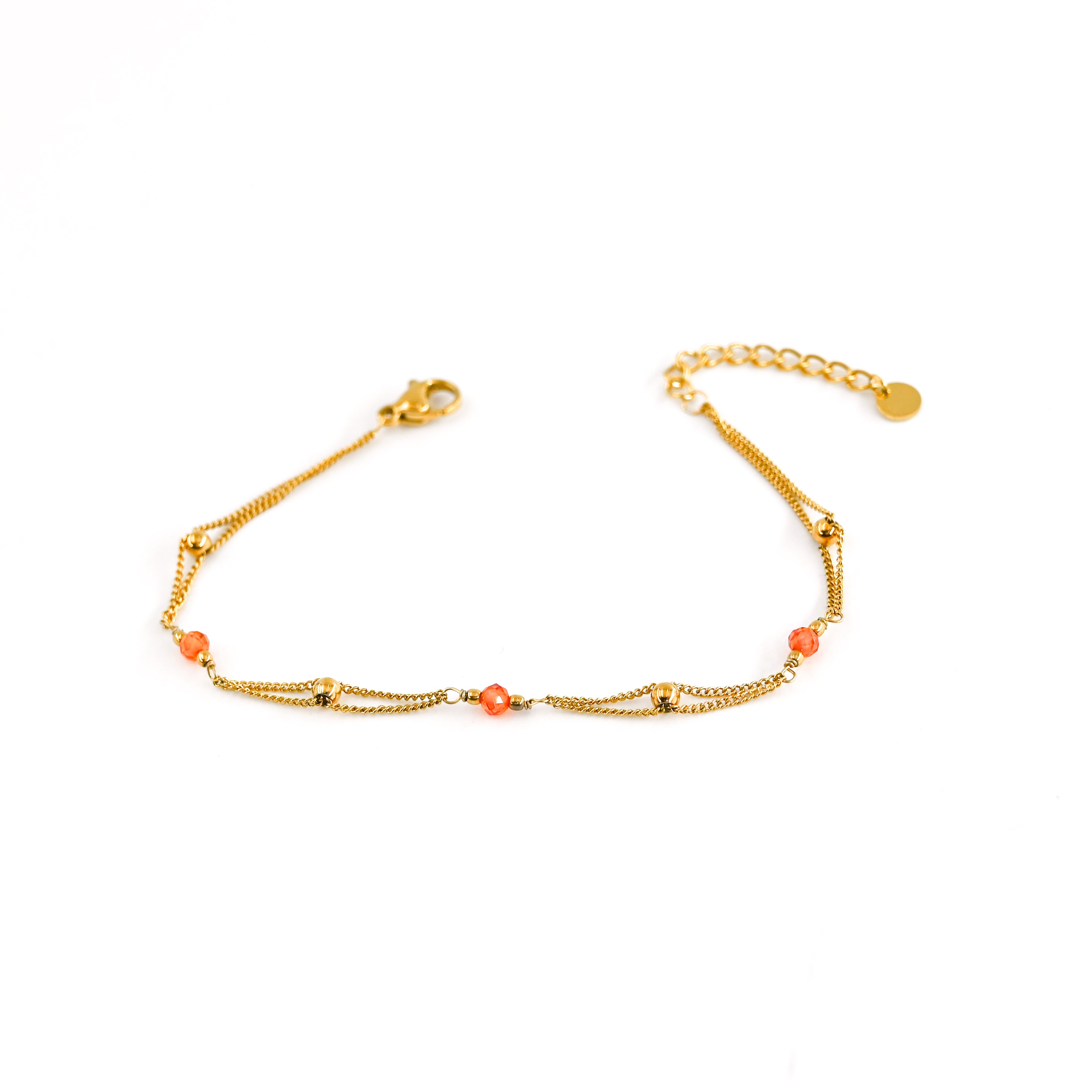 • Bracelet double rangs composé de perles oranges et de perles dorées, en acier inoxydable