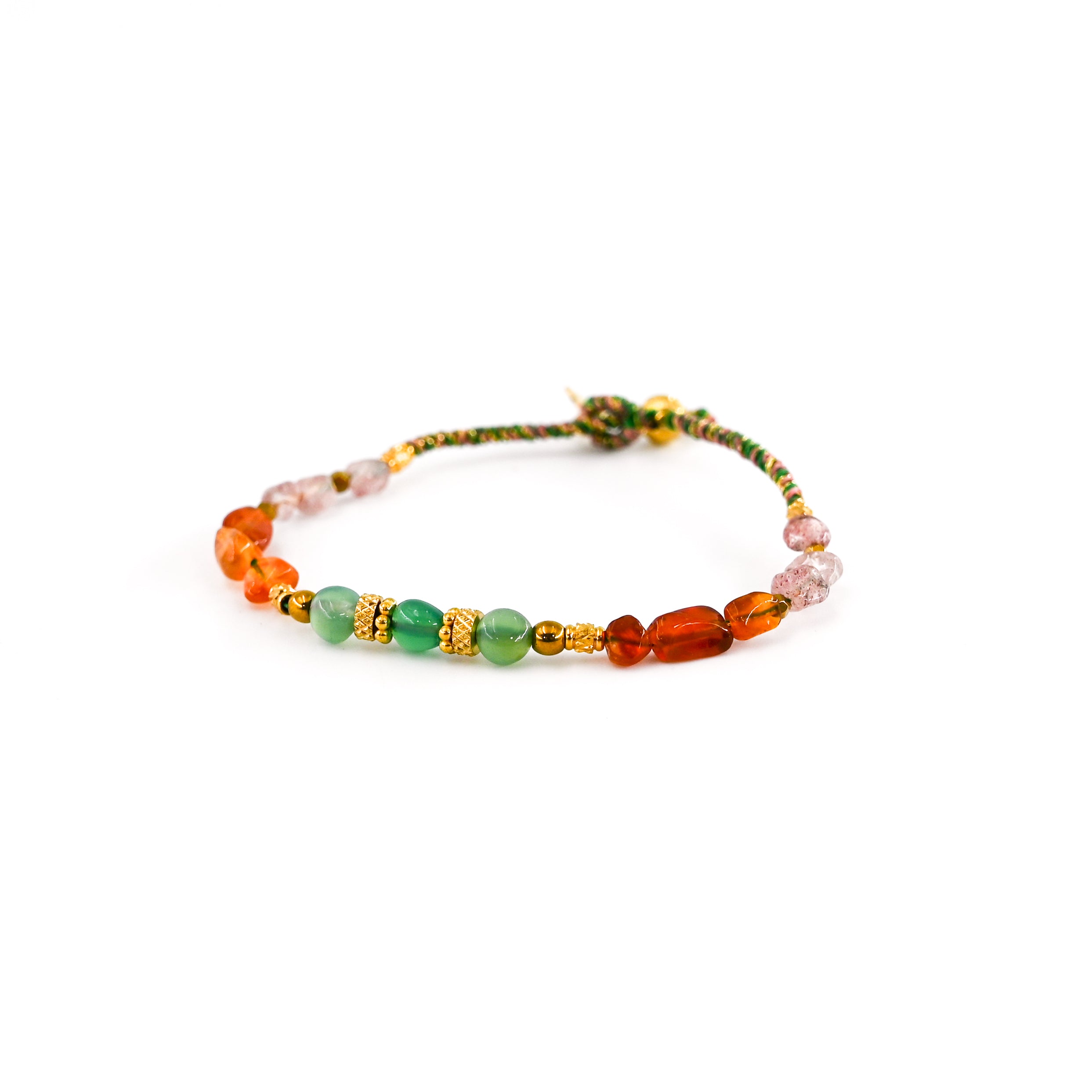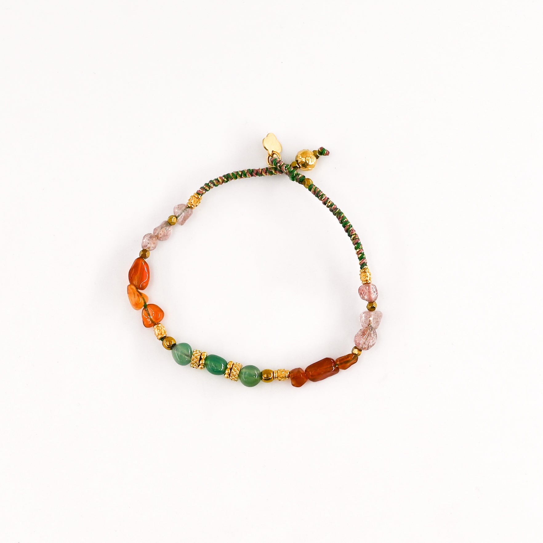 • Bracelet cordon composé de pierres fines colorées et de perles dorées, en acier inoxydable