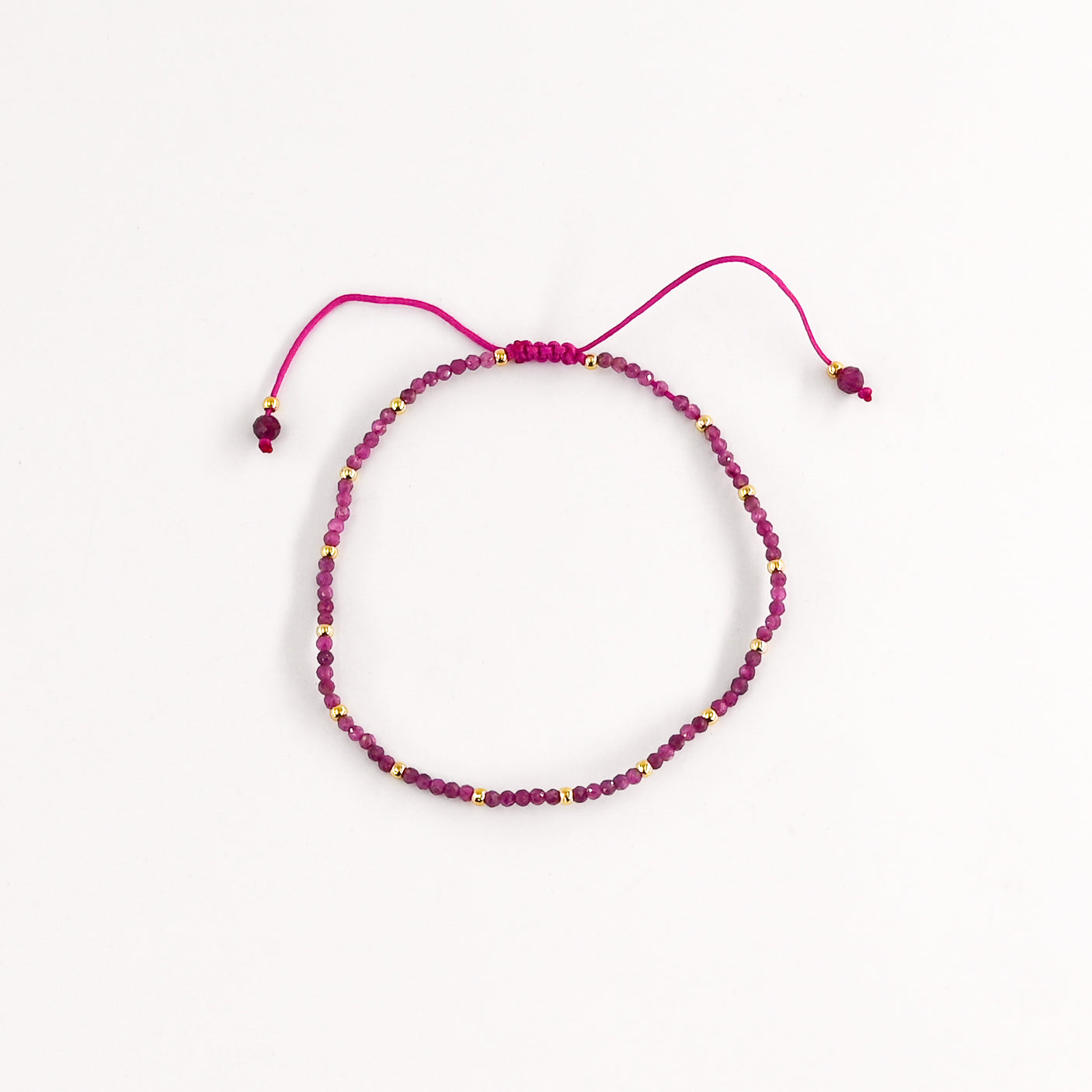 • Bracelet cordon composé de petites perles roses et dorées