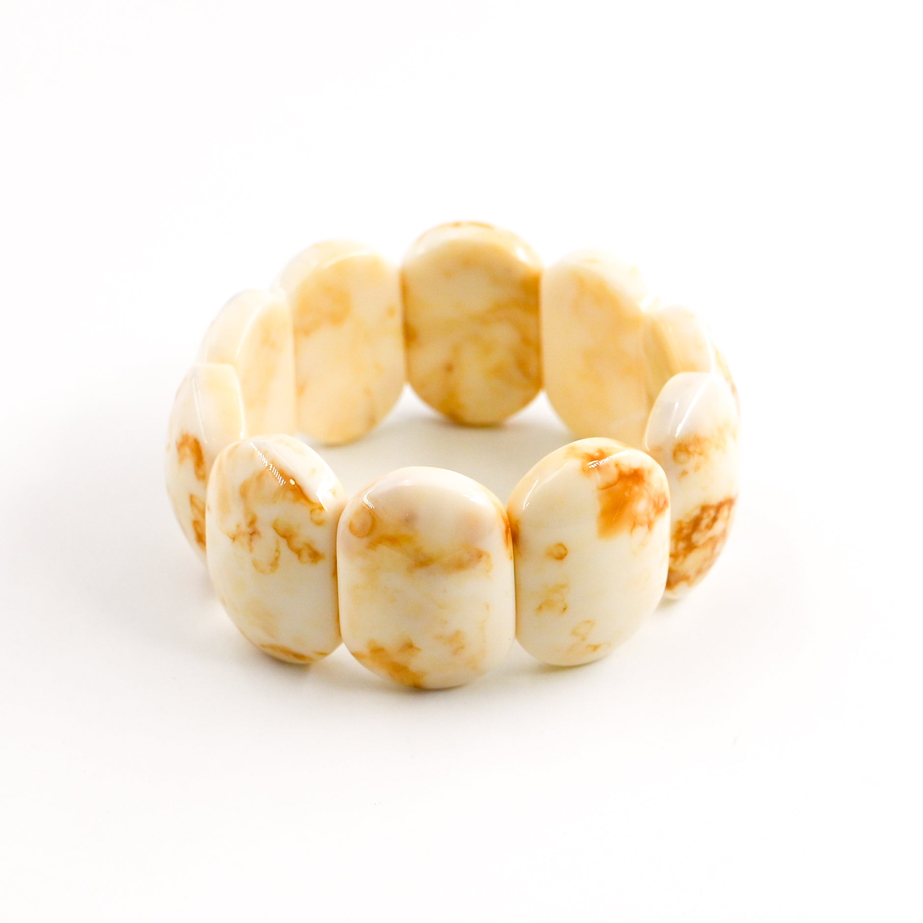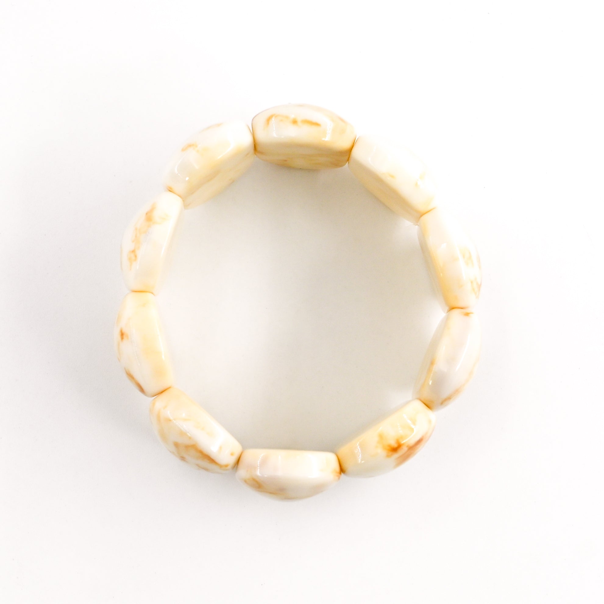 • Bracelet élastique souple composé de pierres fines crèmes marbrées