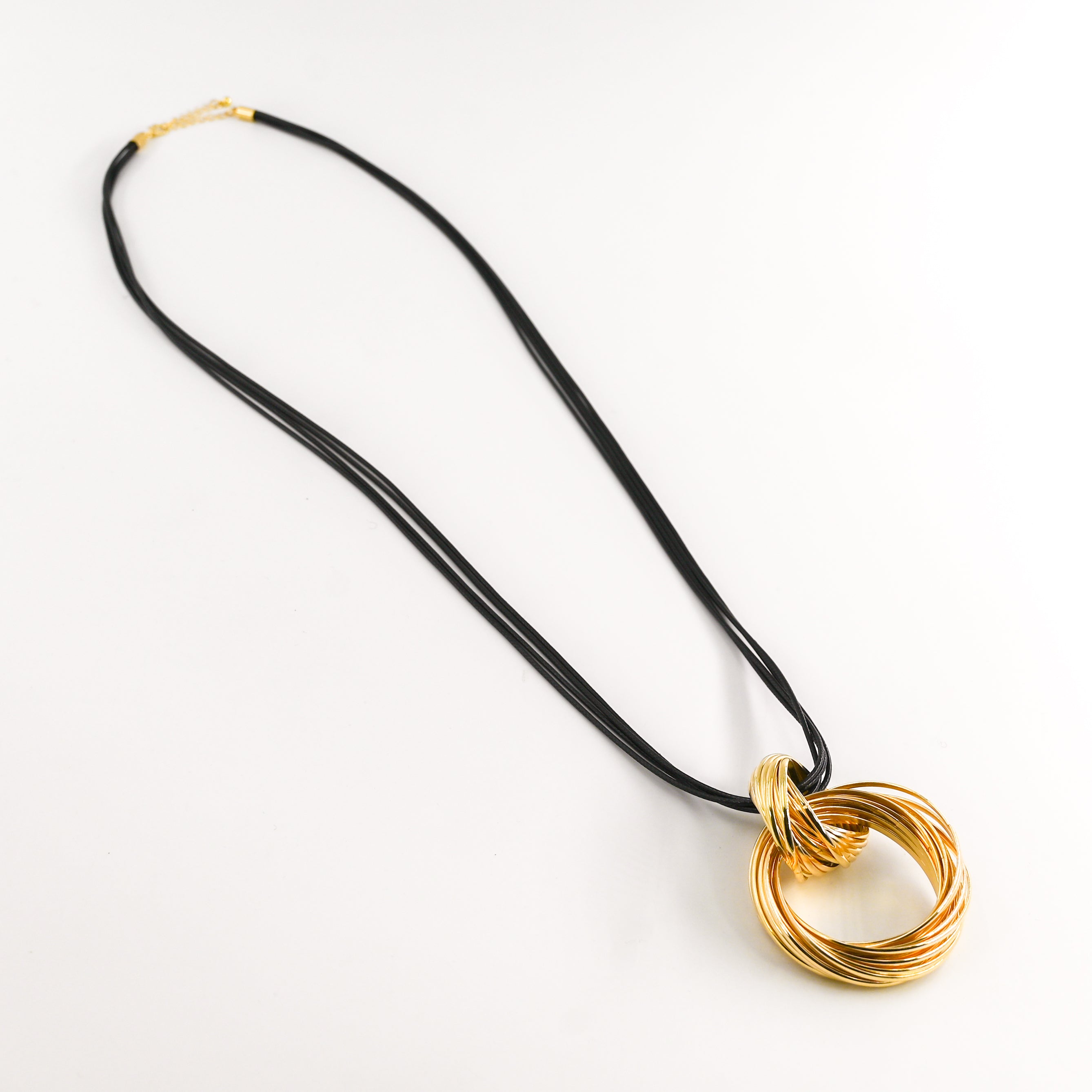 • Sautoir cordon noir composé d'un pendentif rond multi rangs en laiton