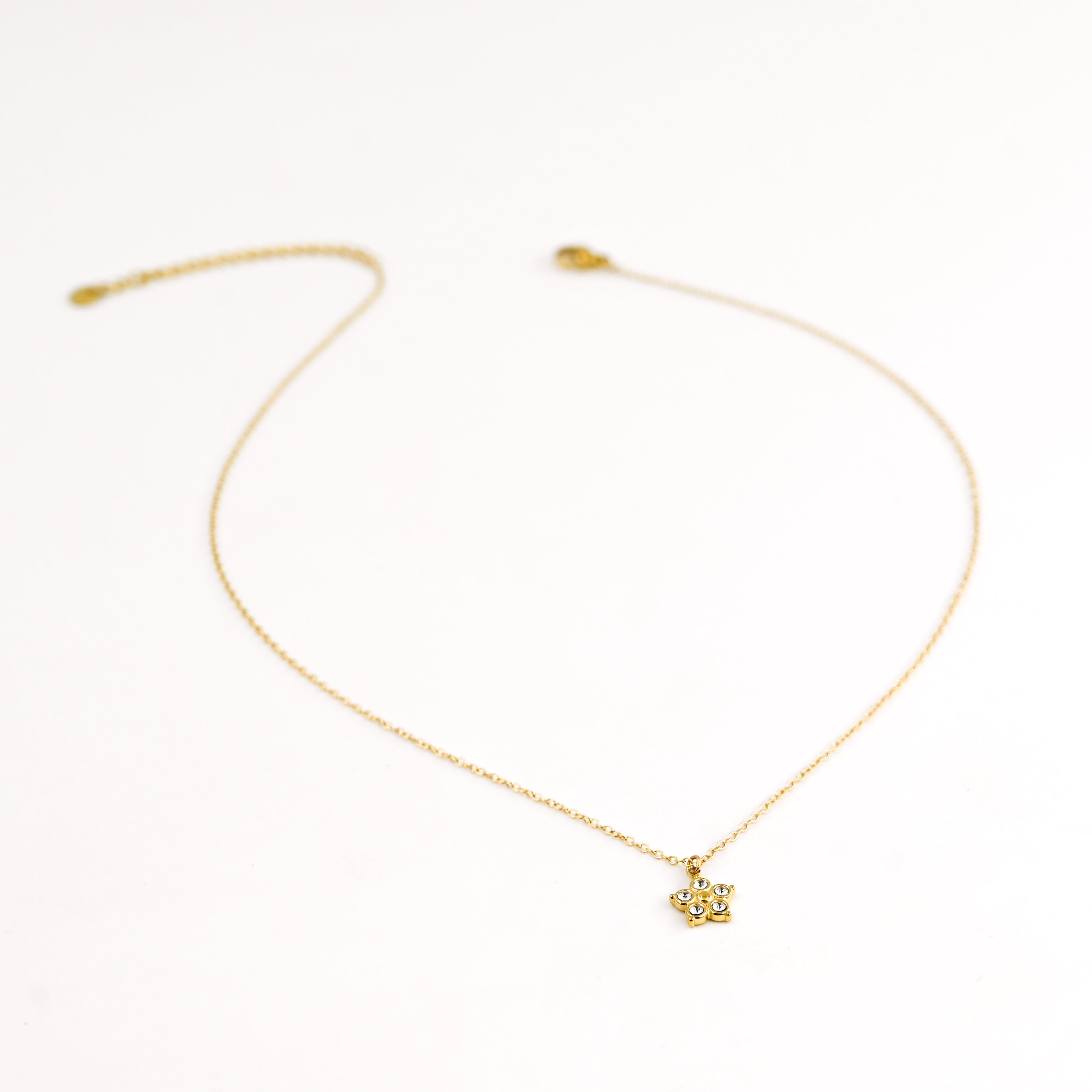 • Collin fin composé d'un pendentif fleur orné de petits strass blancs, en acier inoxydable
