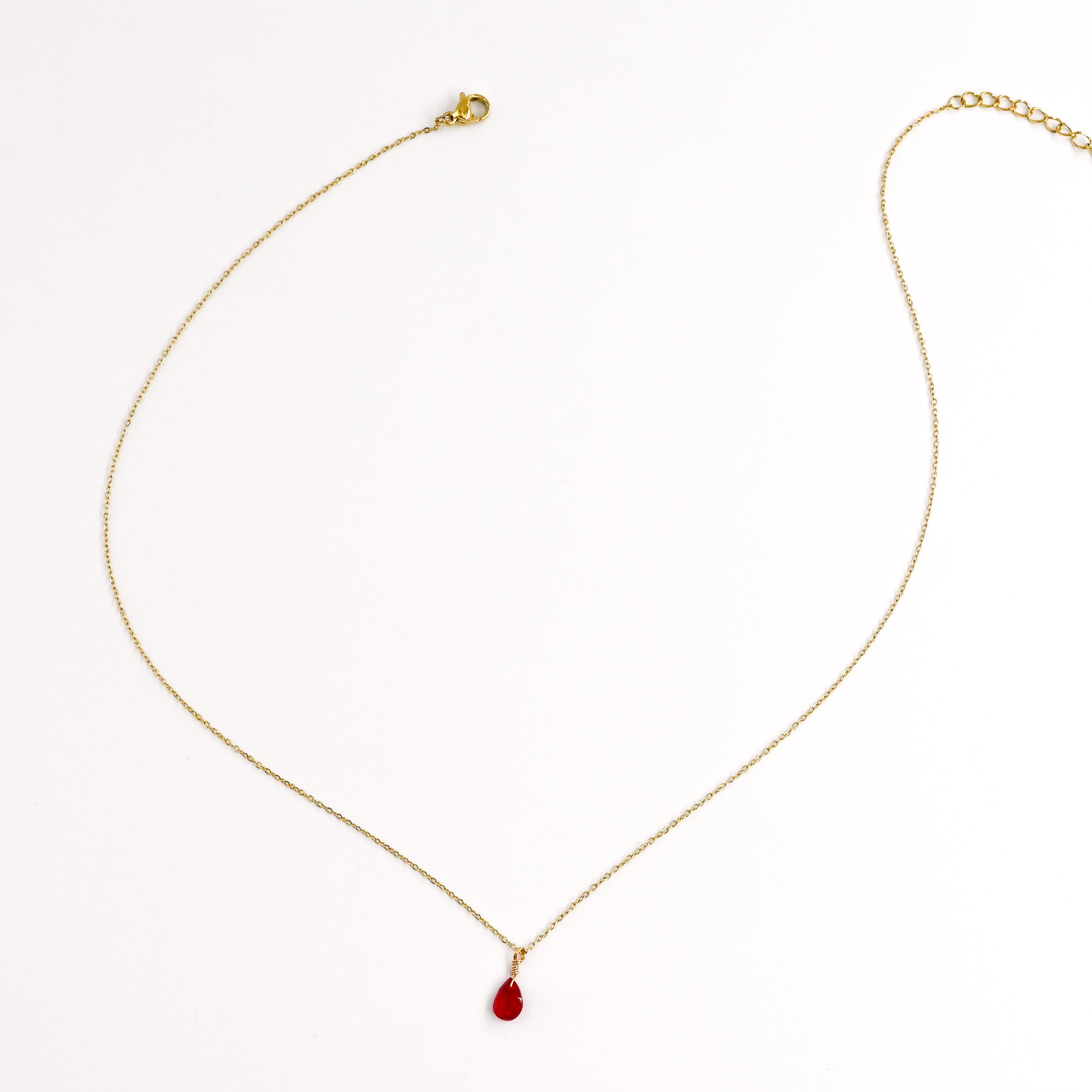 • Collier fin composé d'une pierre rouge en forme de goutte, en acier inoxydable
