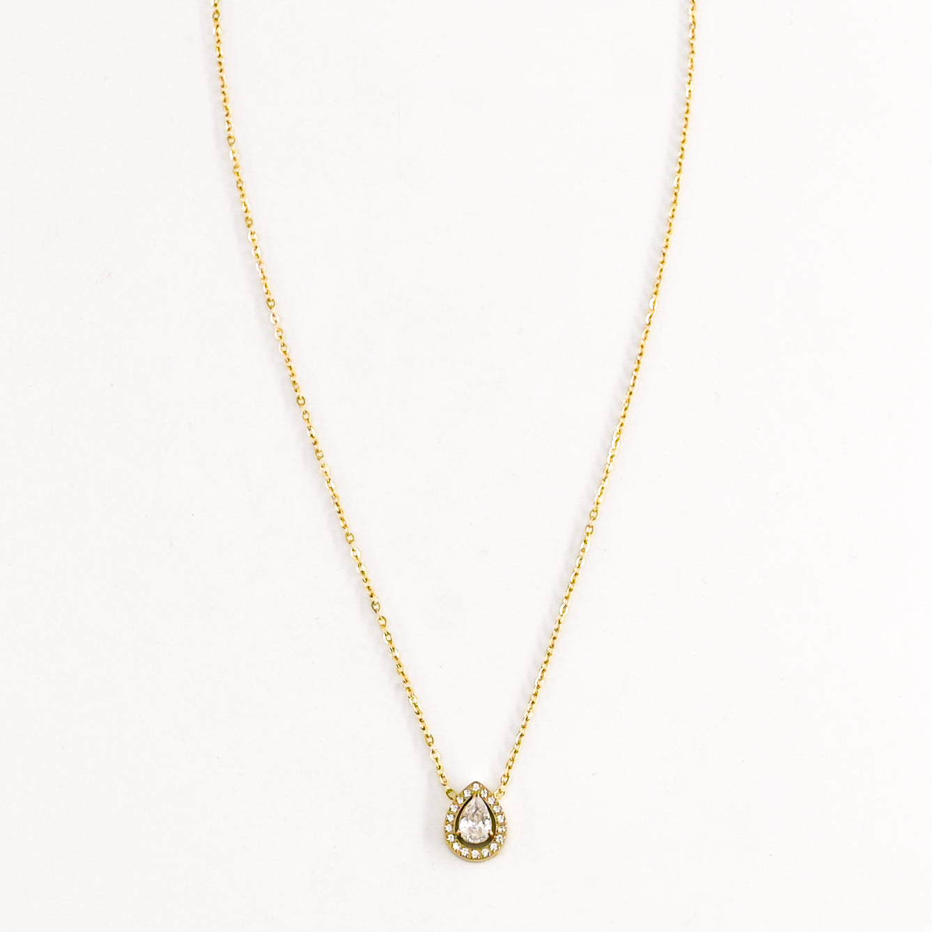 • Collier fin composé d'un pendentif goutte en strass blancs, en acier inoxydable