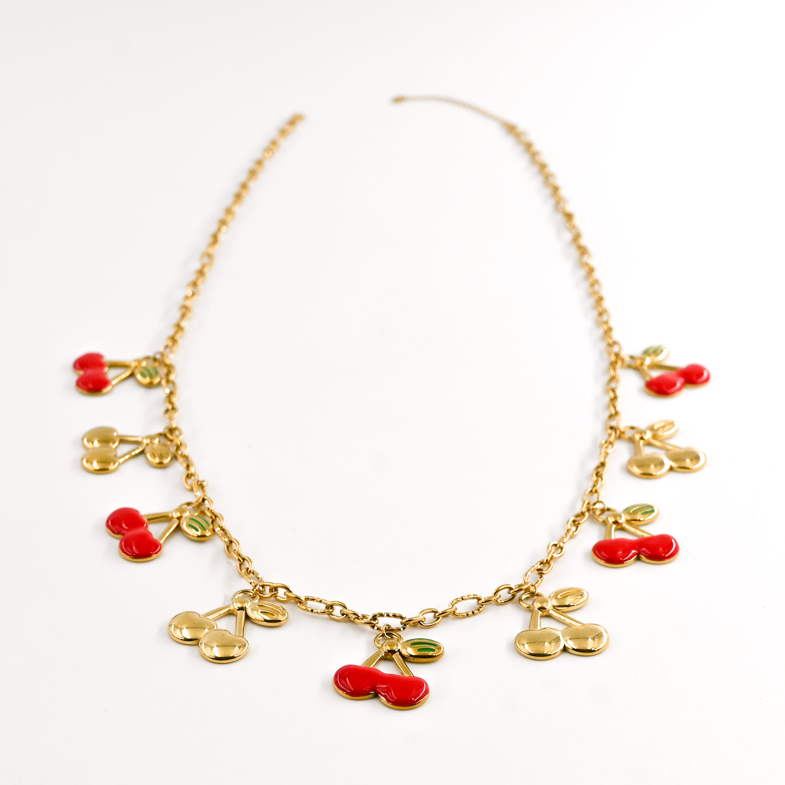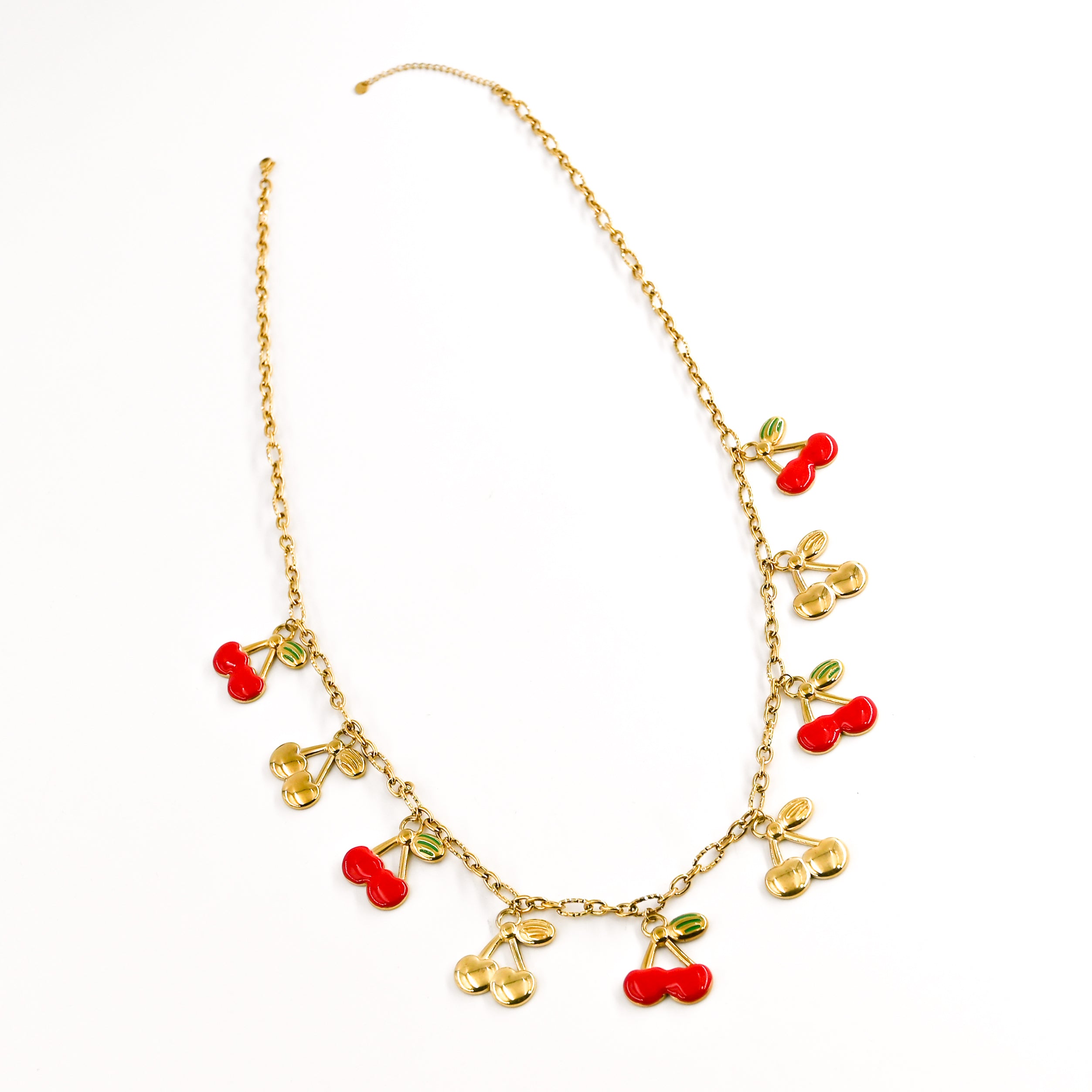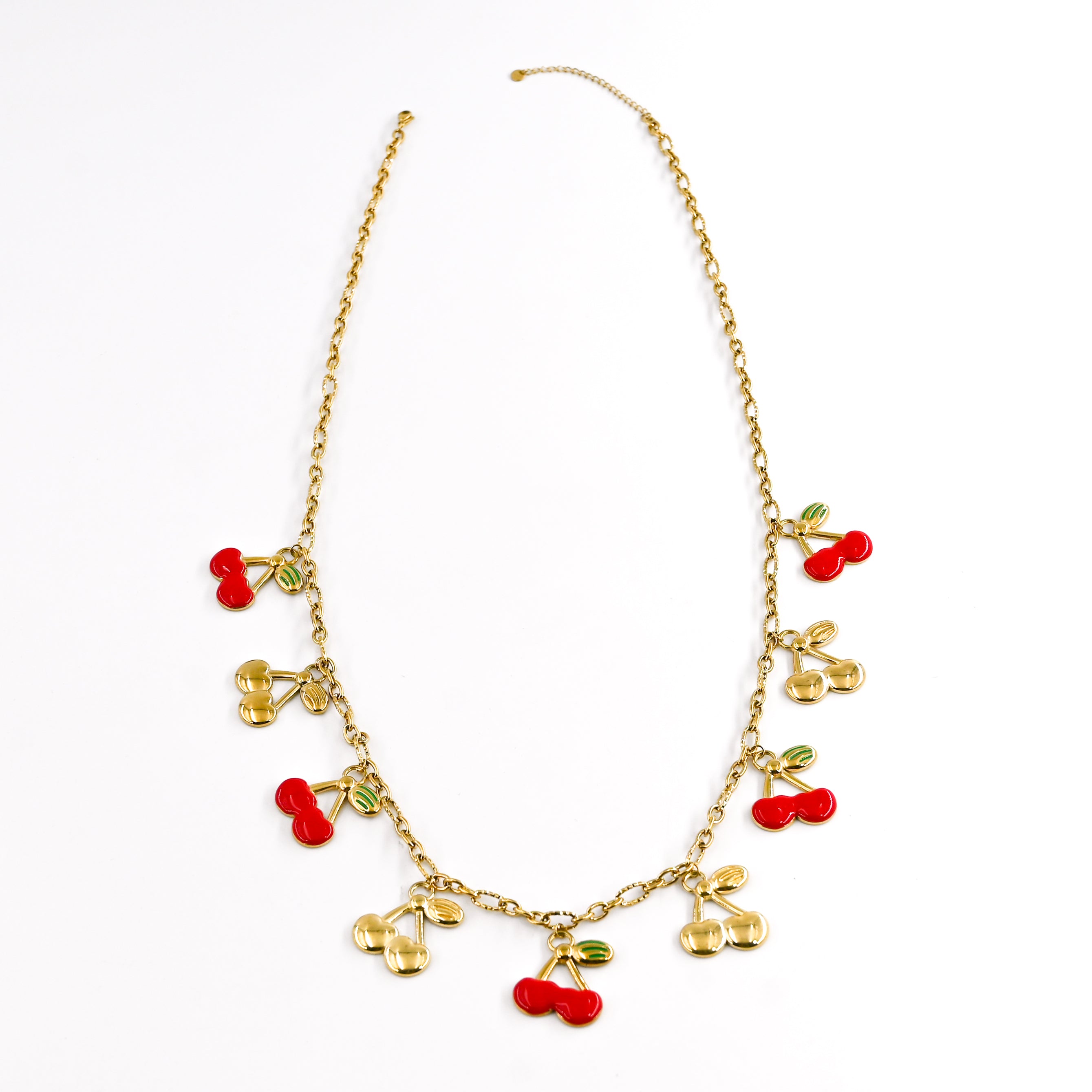 • Sautoir maille composée de pendentifs cerises, en acier inoxydable