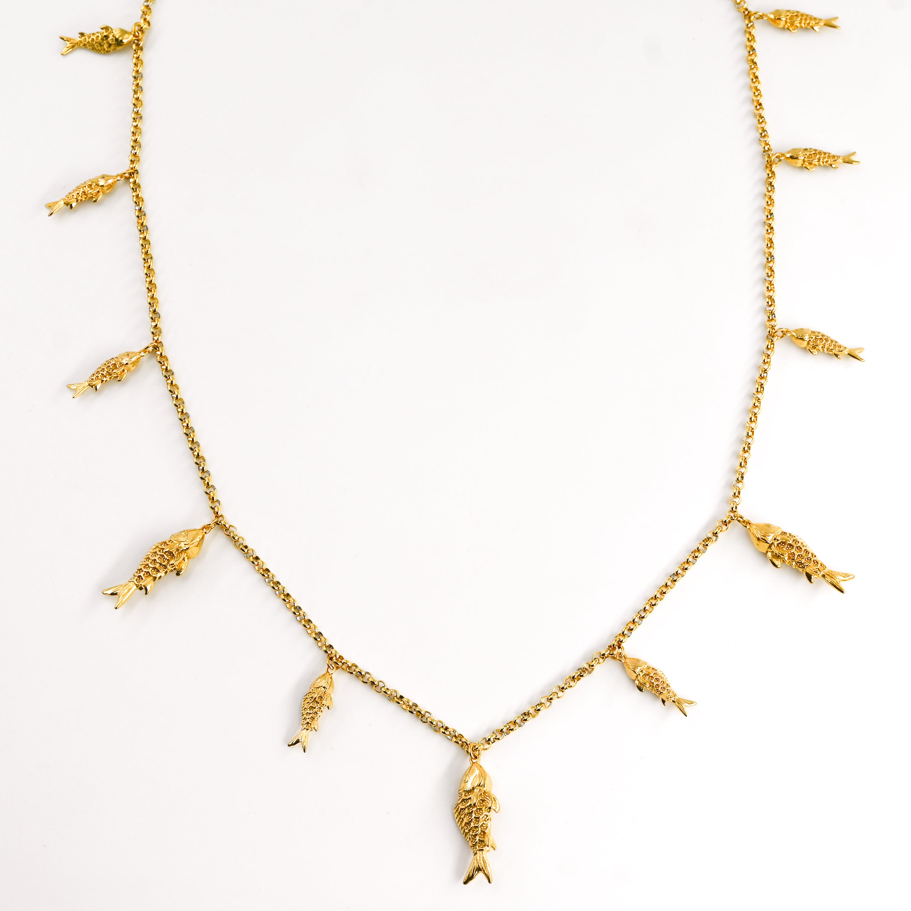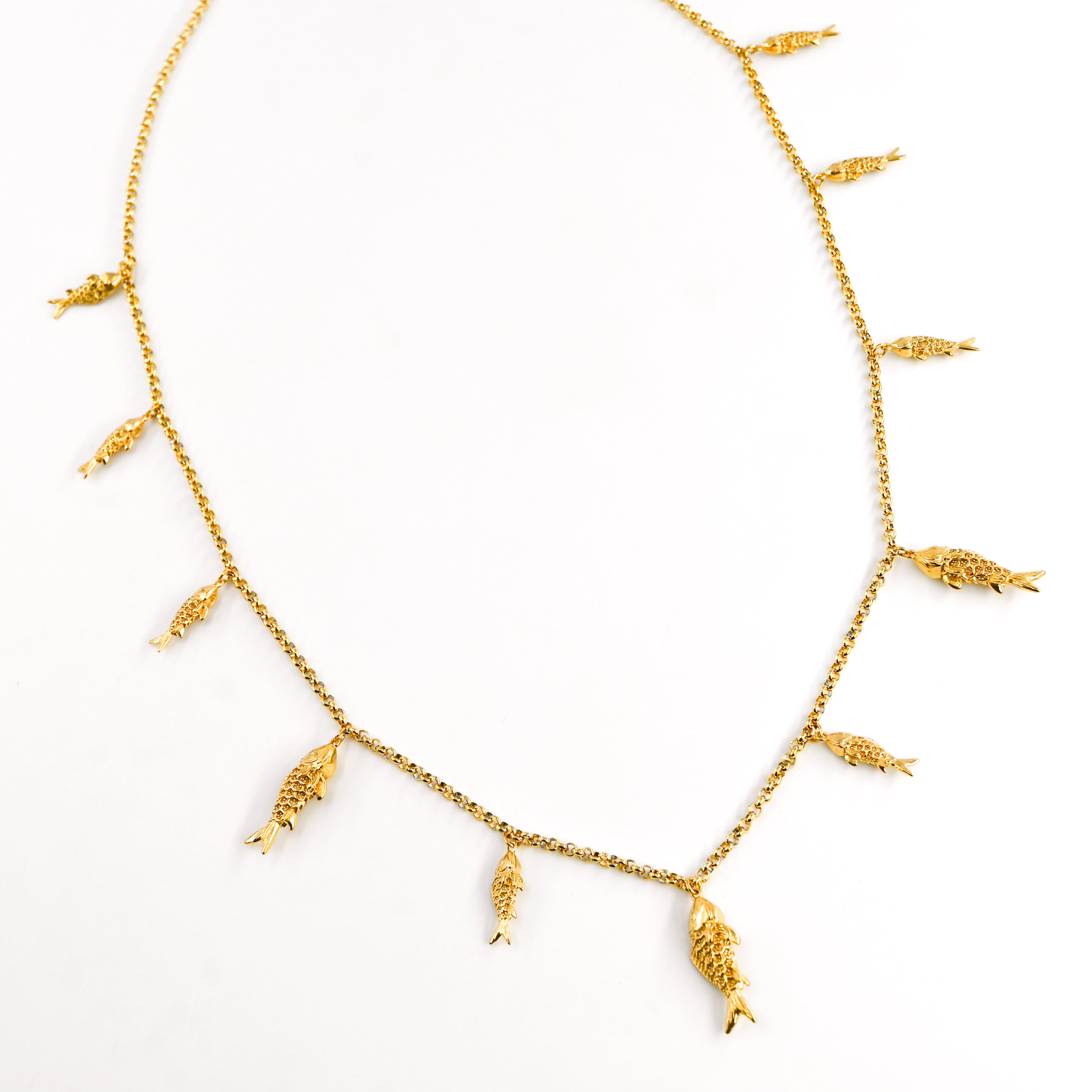 • Sautoir composé de pendentifs poissons dorés, en acier inoxydable