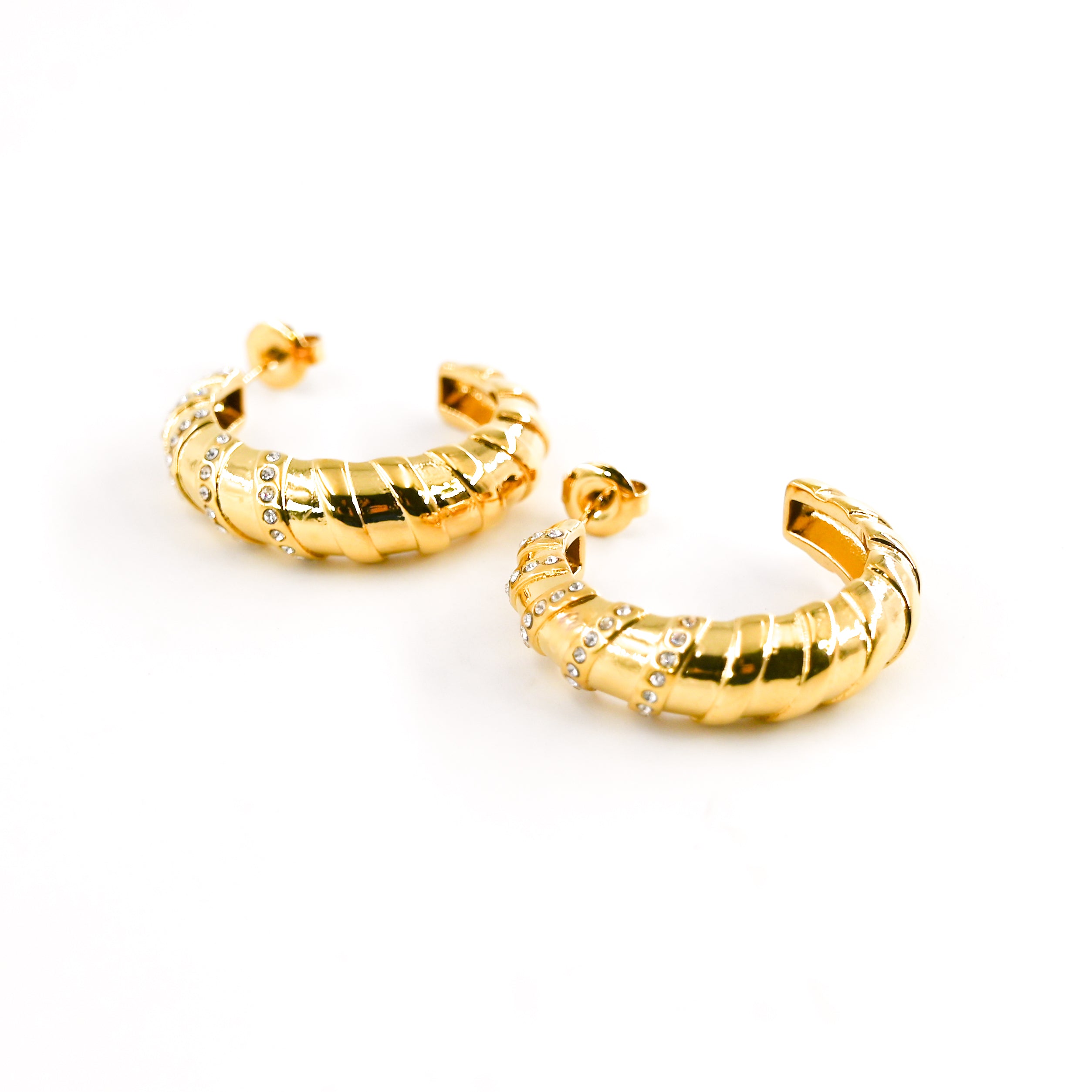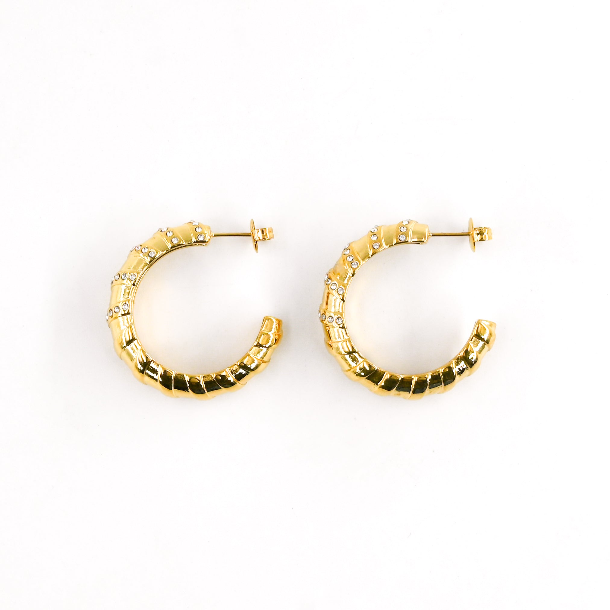 • Créoles rondes ornées de petits strass blancs, en acier inoxydable