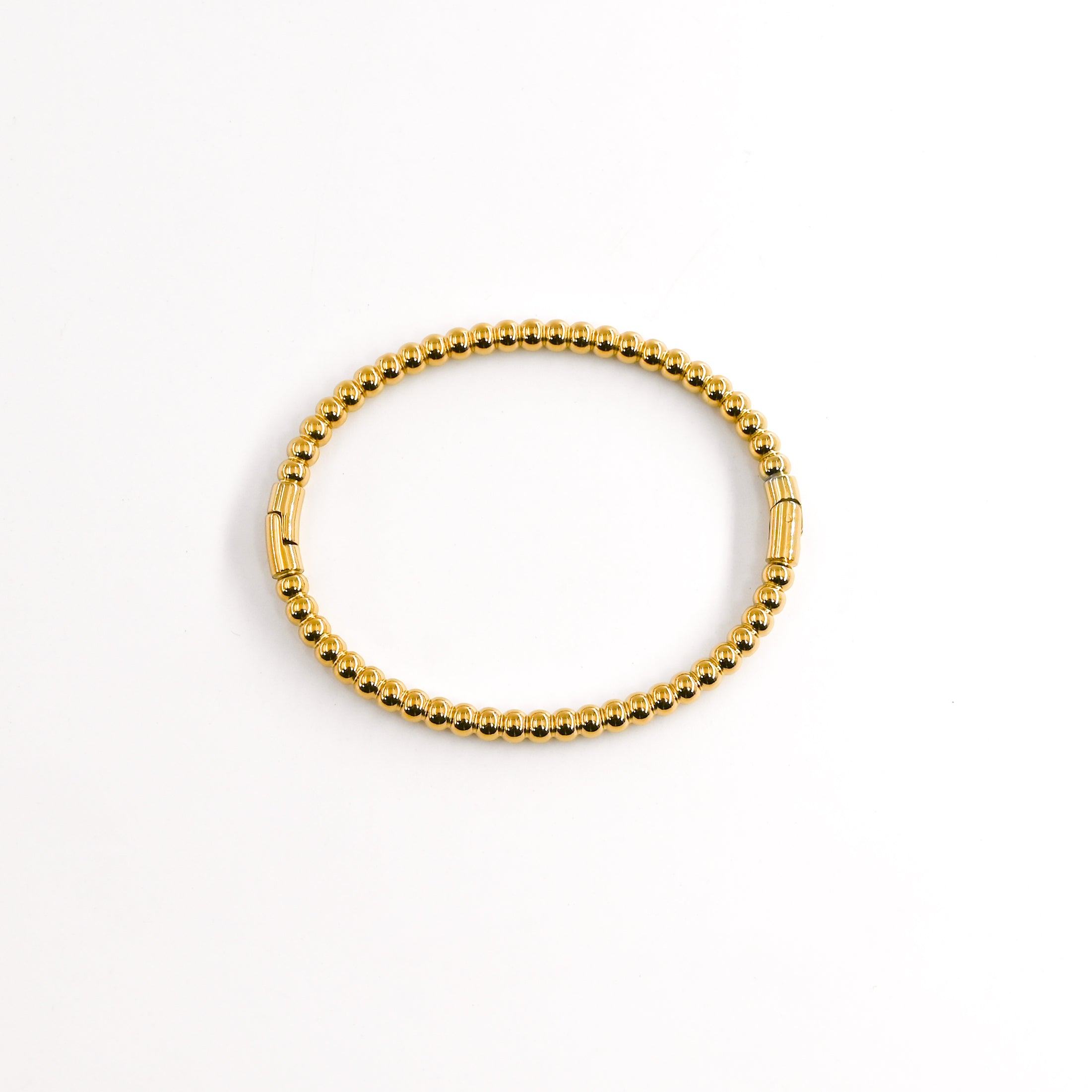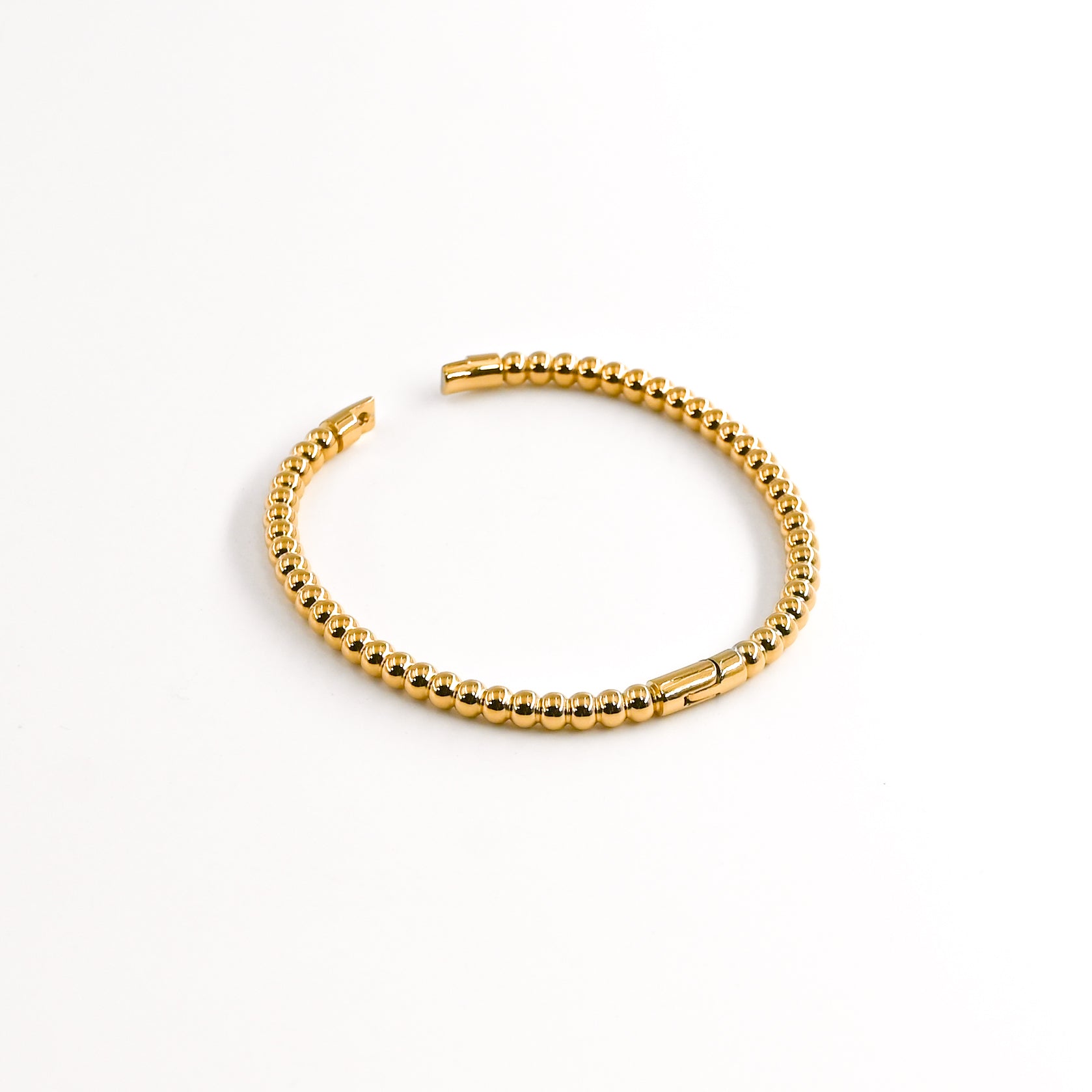 • Jonc rigide composé de petites perles dorées, en acier inoxydable