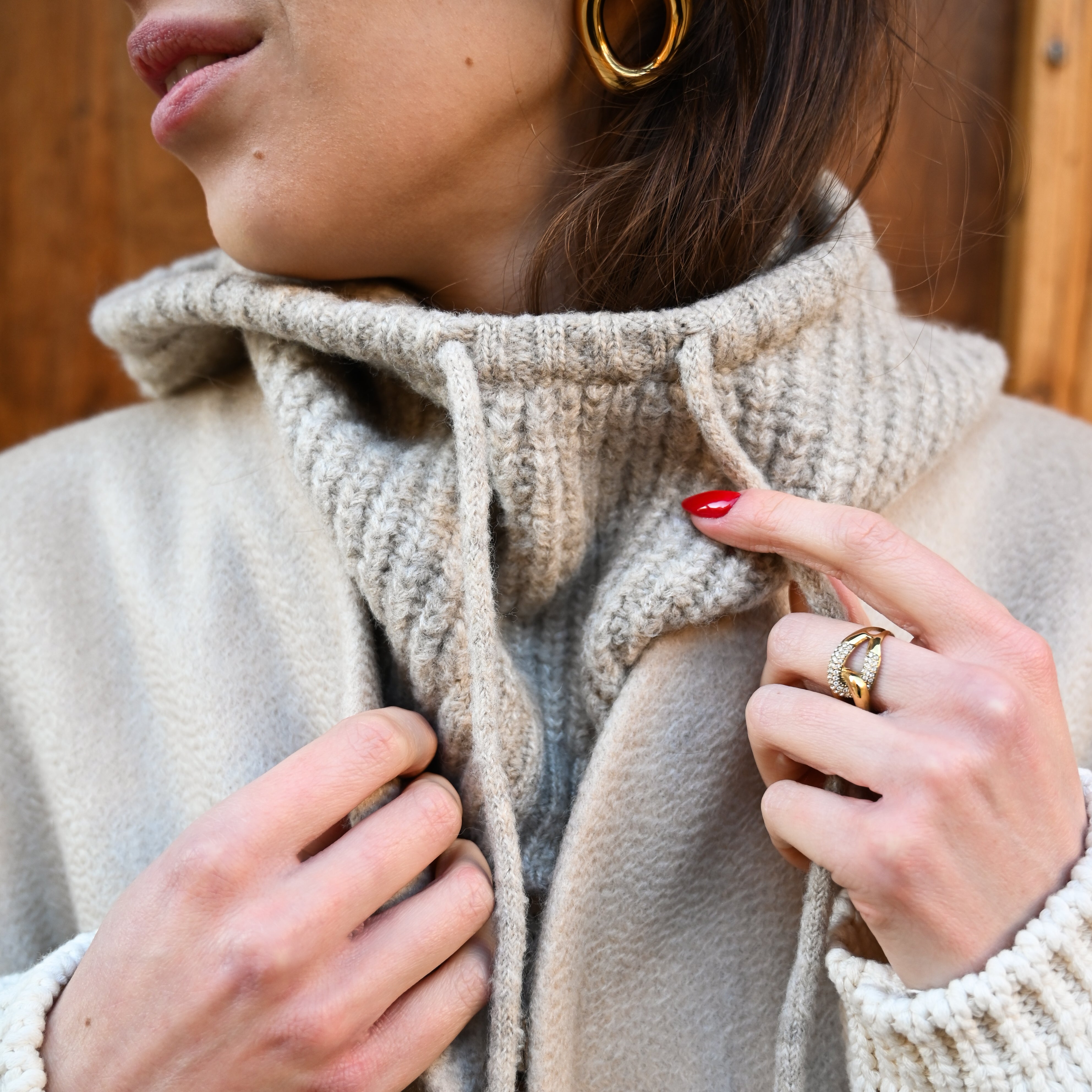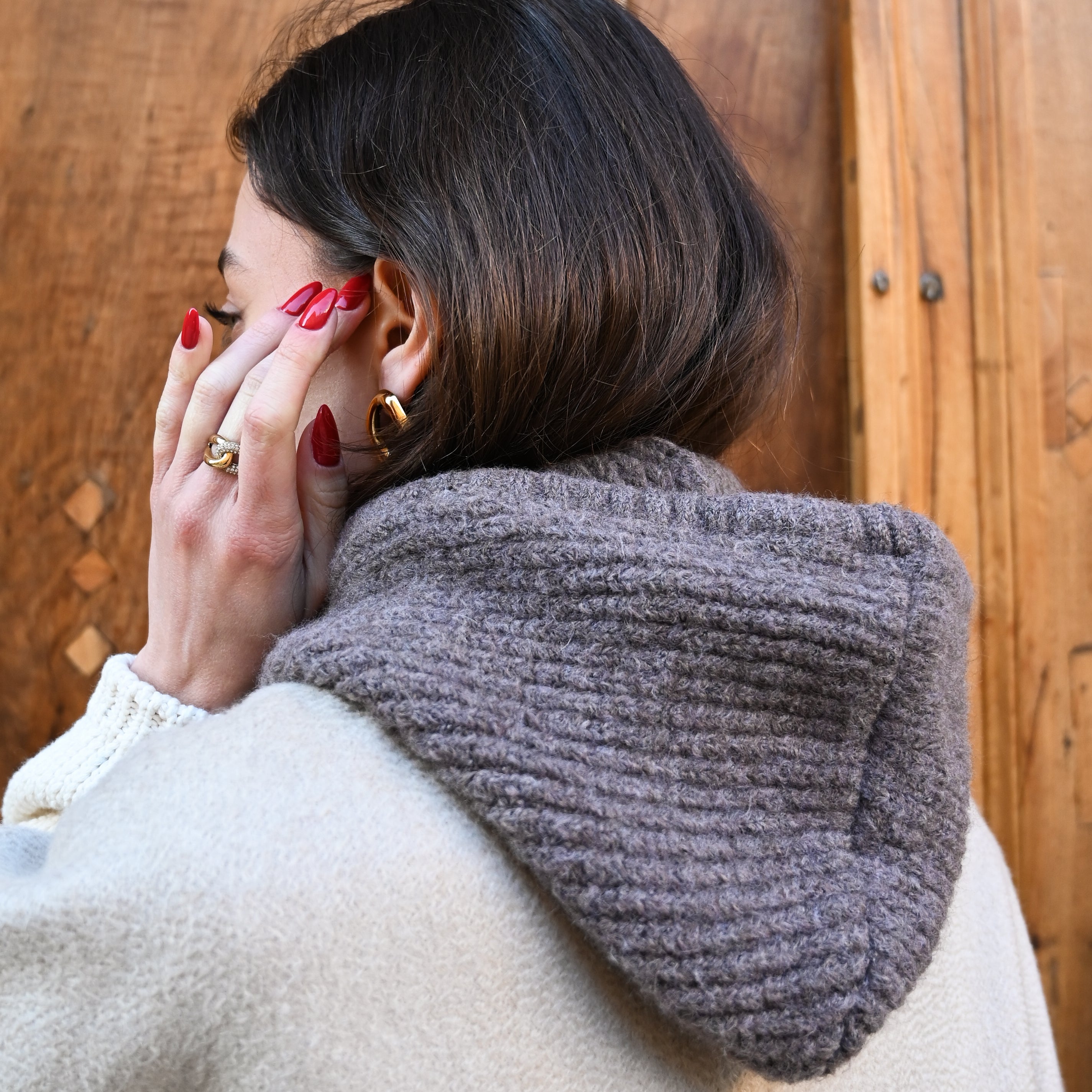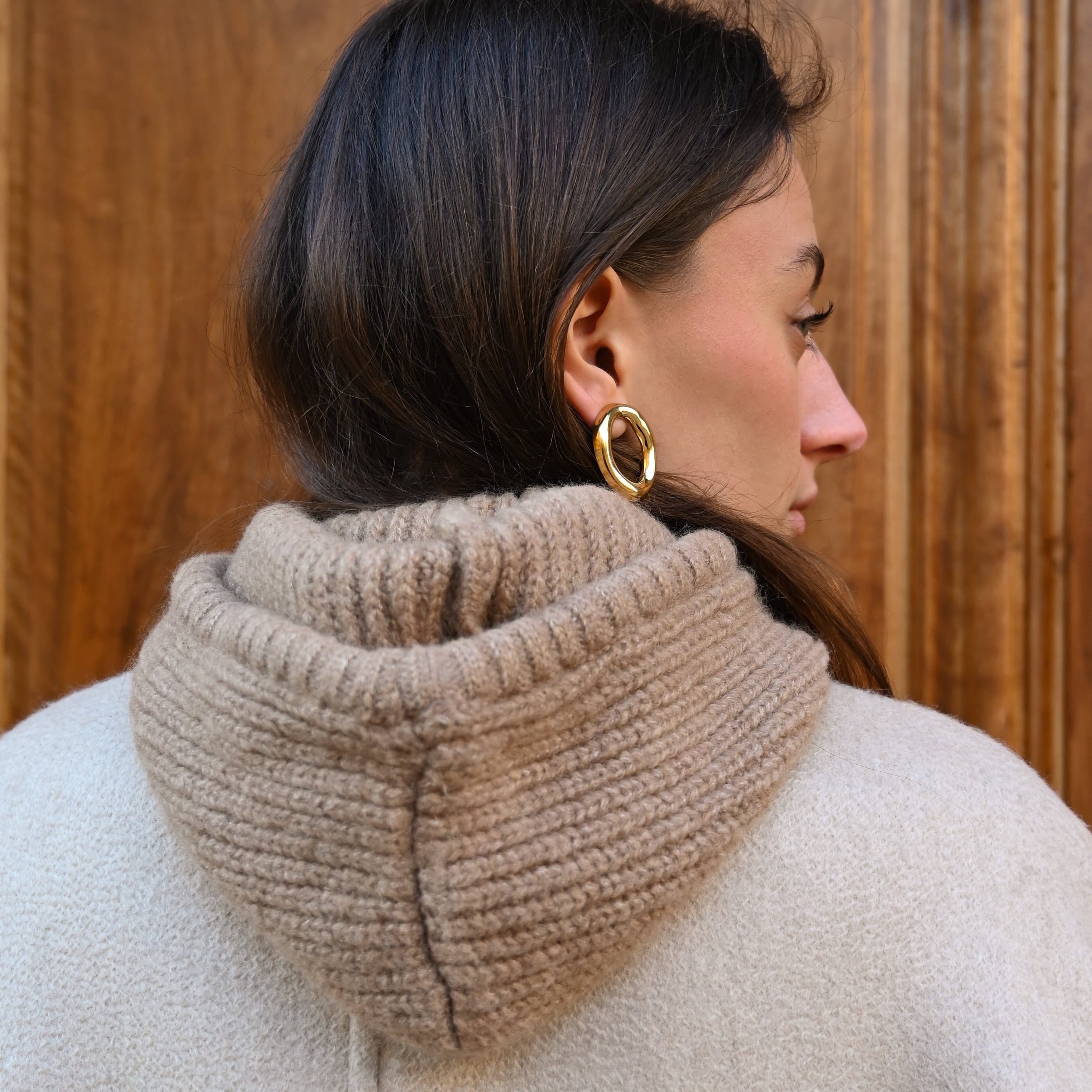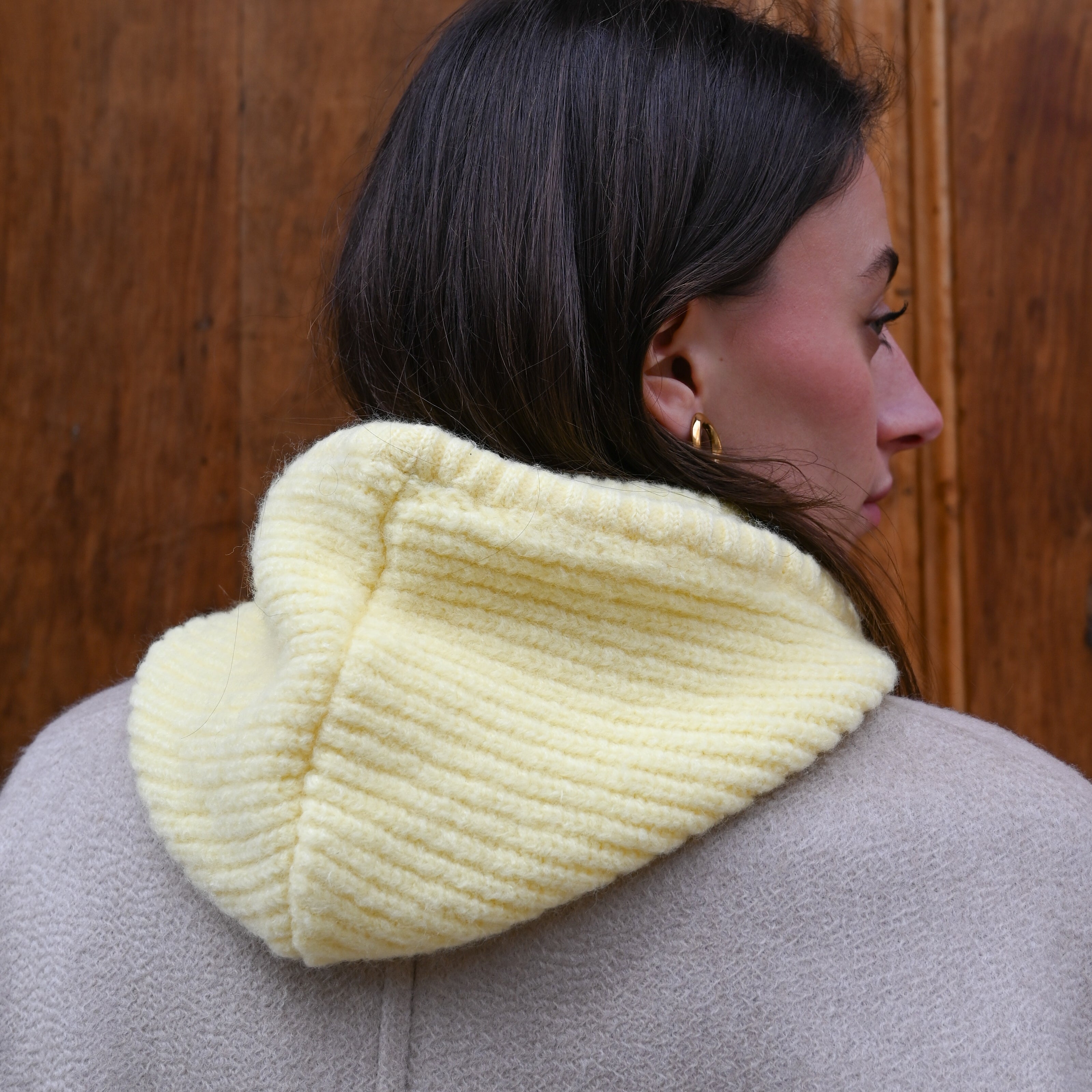 • Cagoule en laine côtelée