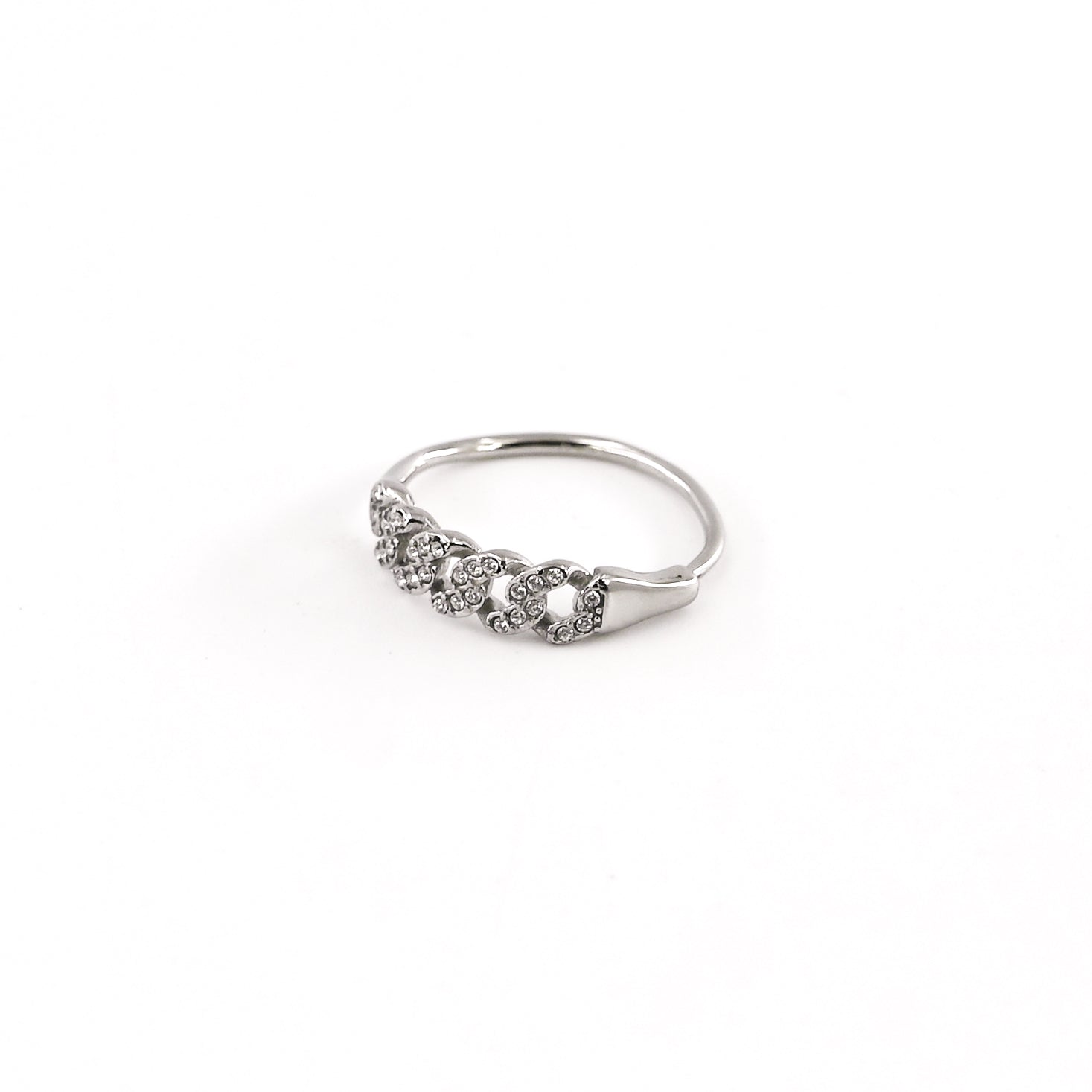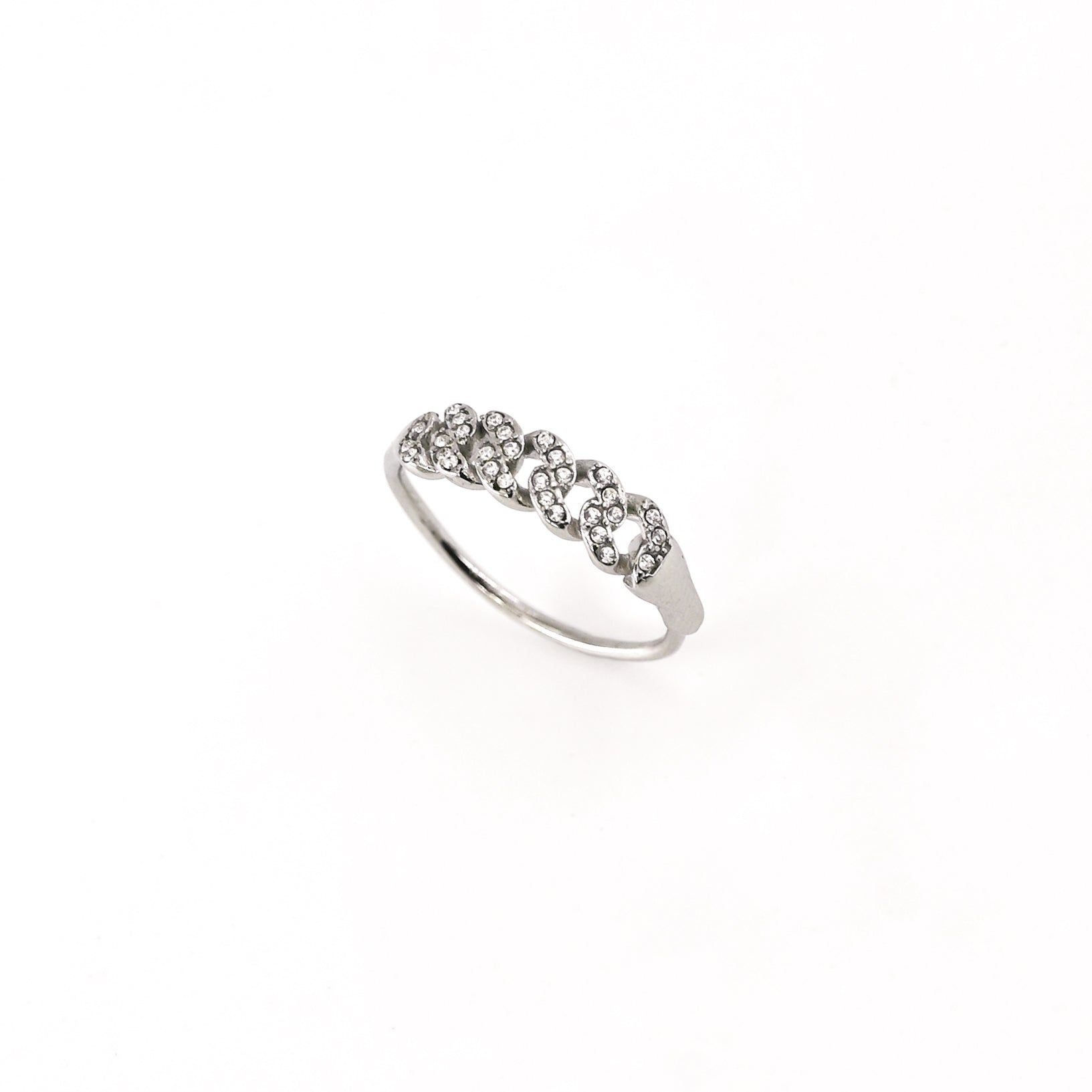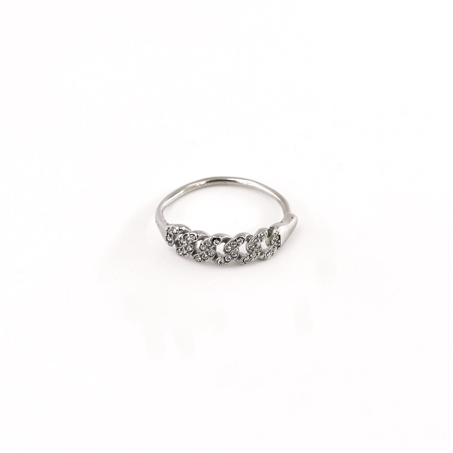 • Bague composée d'un motif maille orné de strass blancs, en acier inoxydable