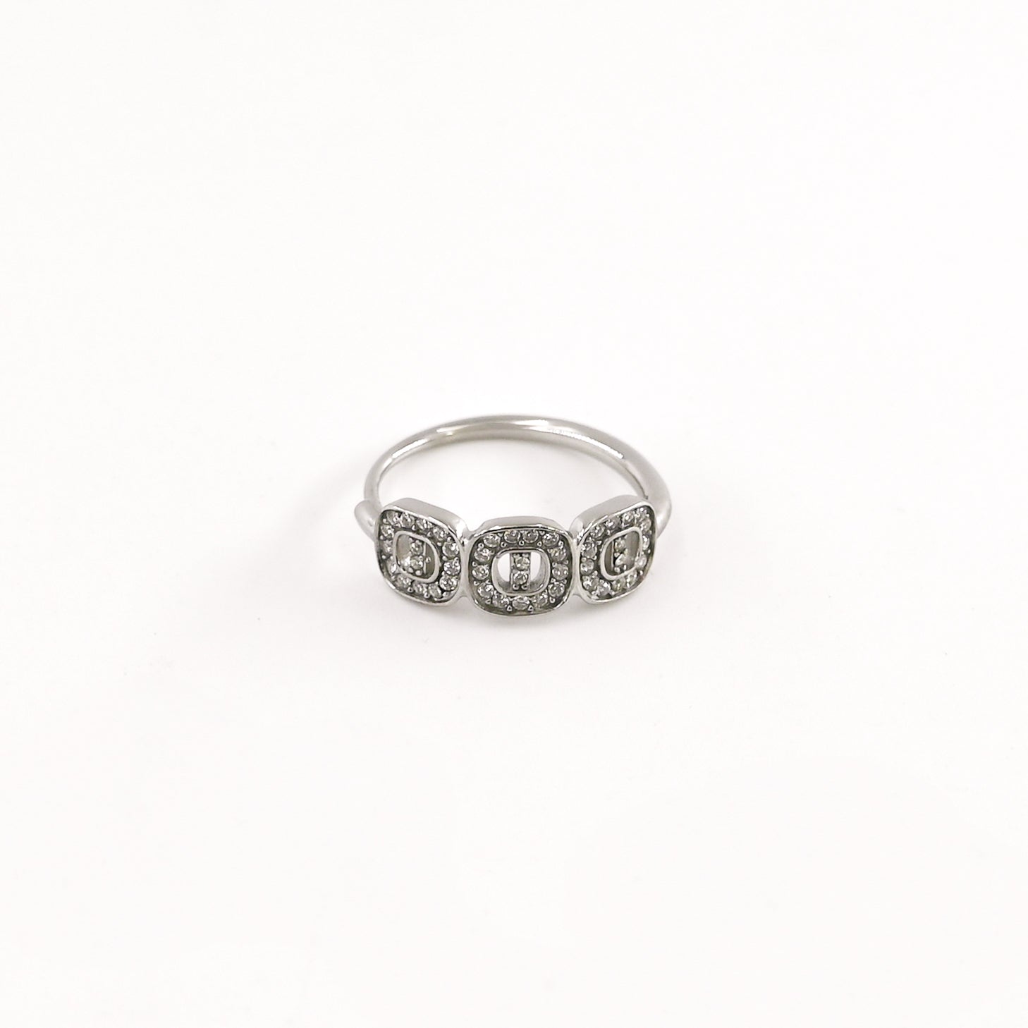 • Bague composée de trois motifs carrés ornés de strass blancs, en acier inoxydable