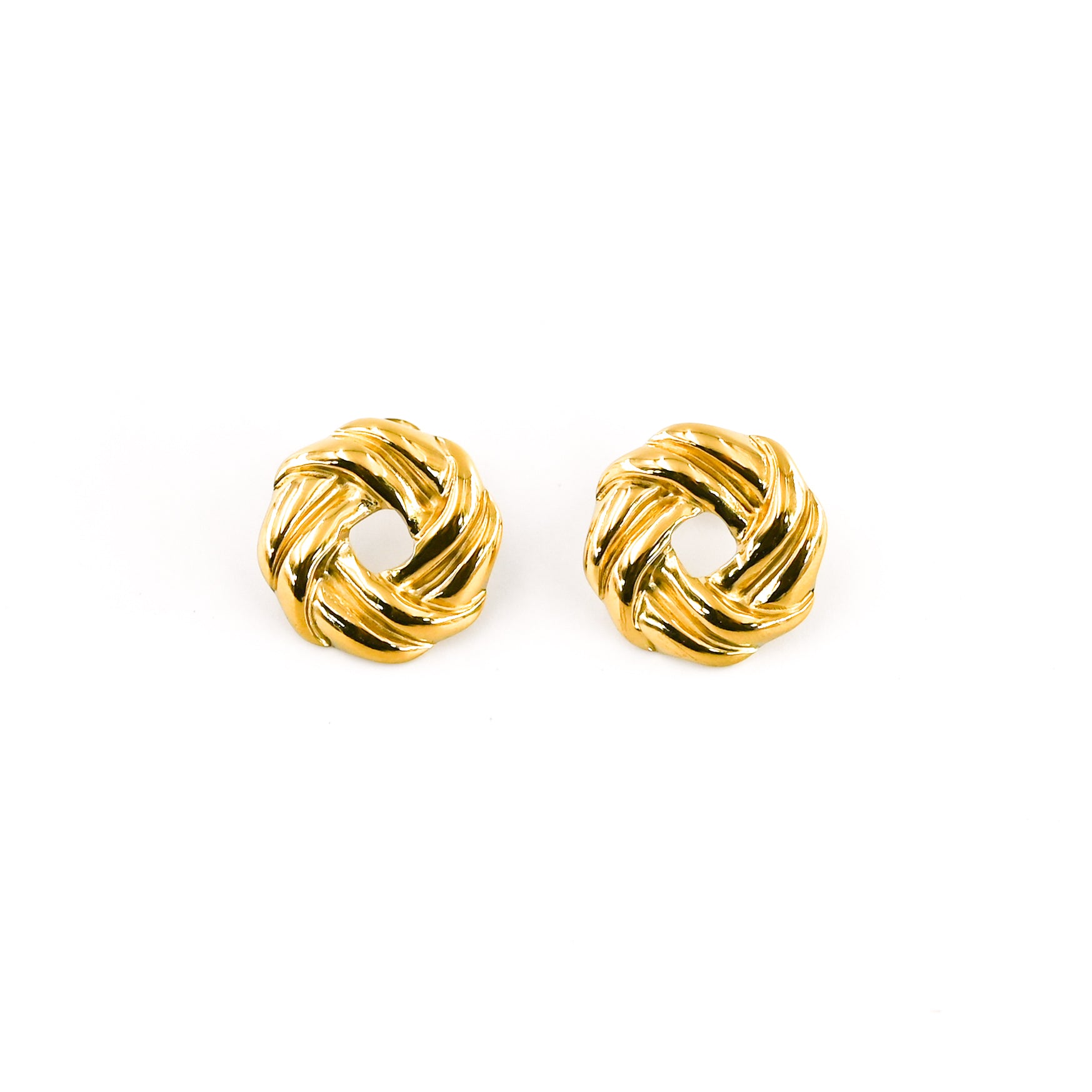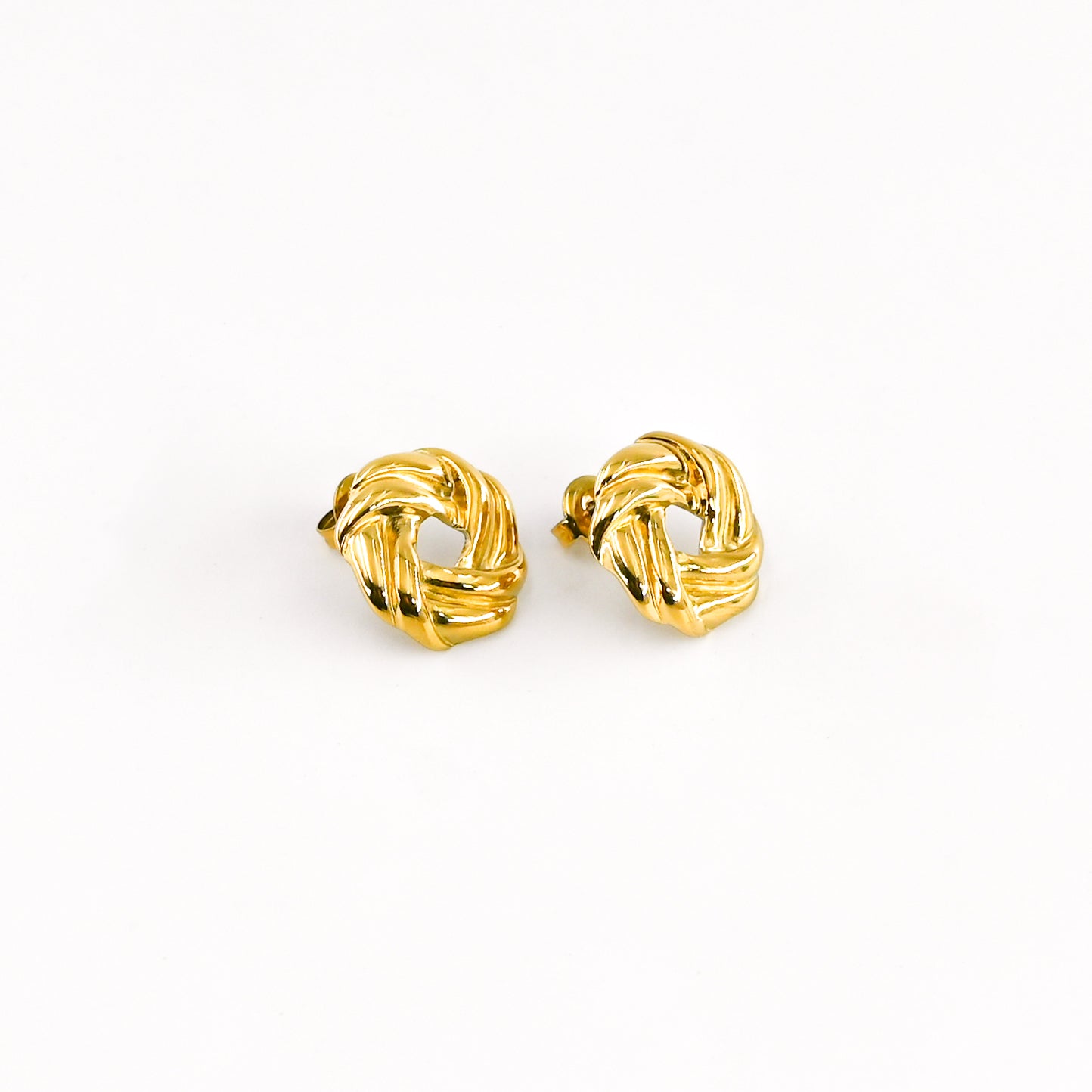 • Boucles d'oreilles composées d'un empiècement torsadé doré, en acier inoxyable