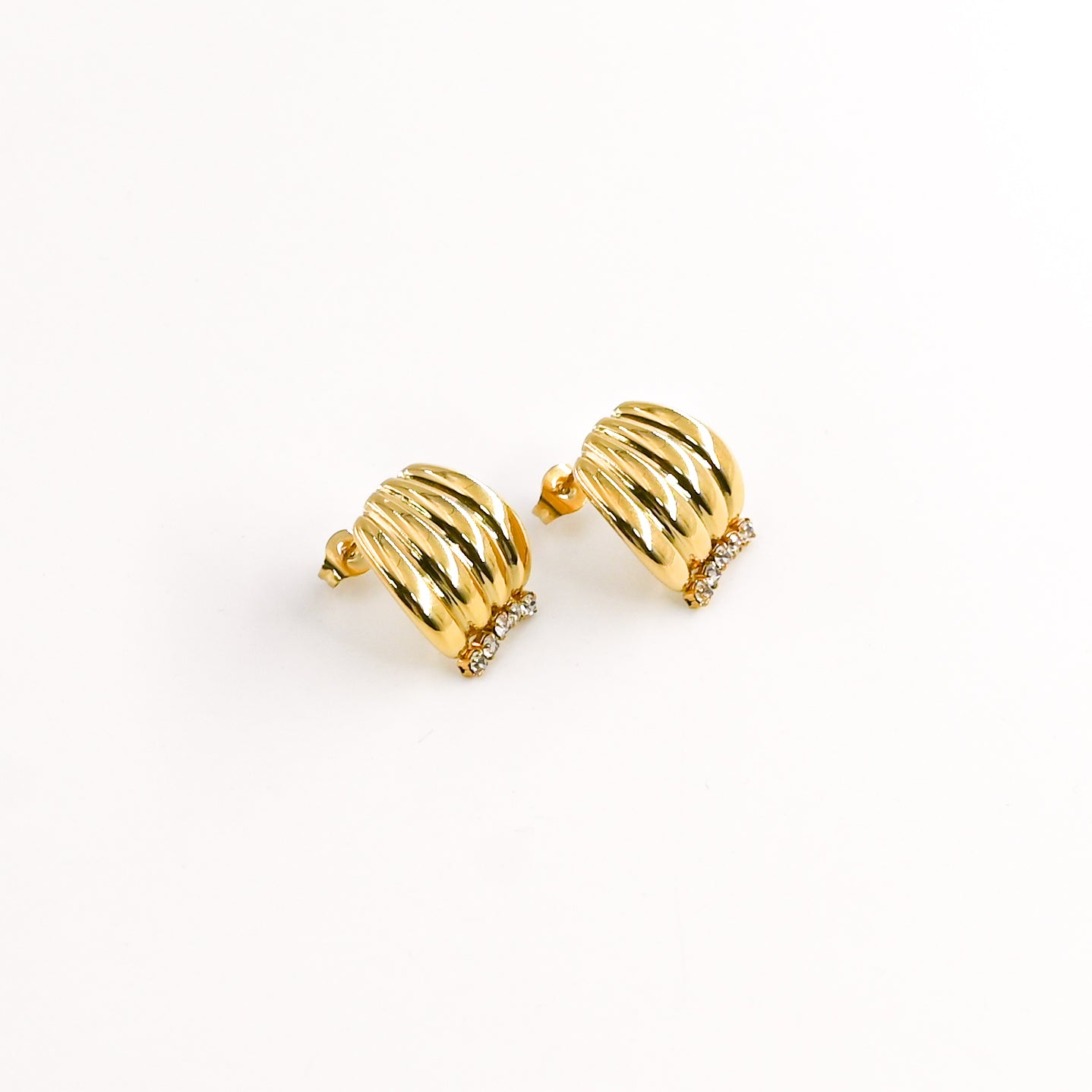 • Boucles d'oreilles pendantes striées composées d'une rangée de petits strass blancs, en acier inoxydable