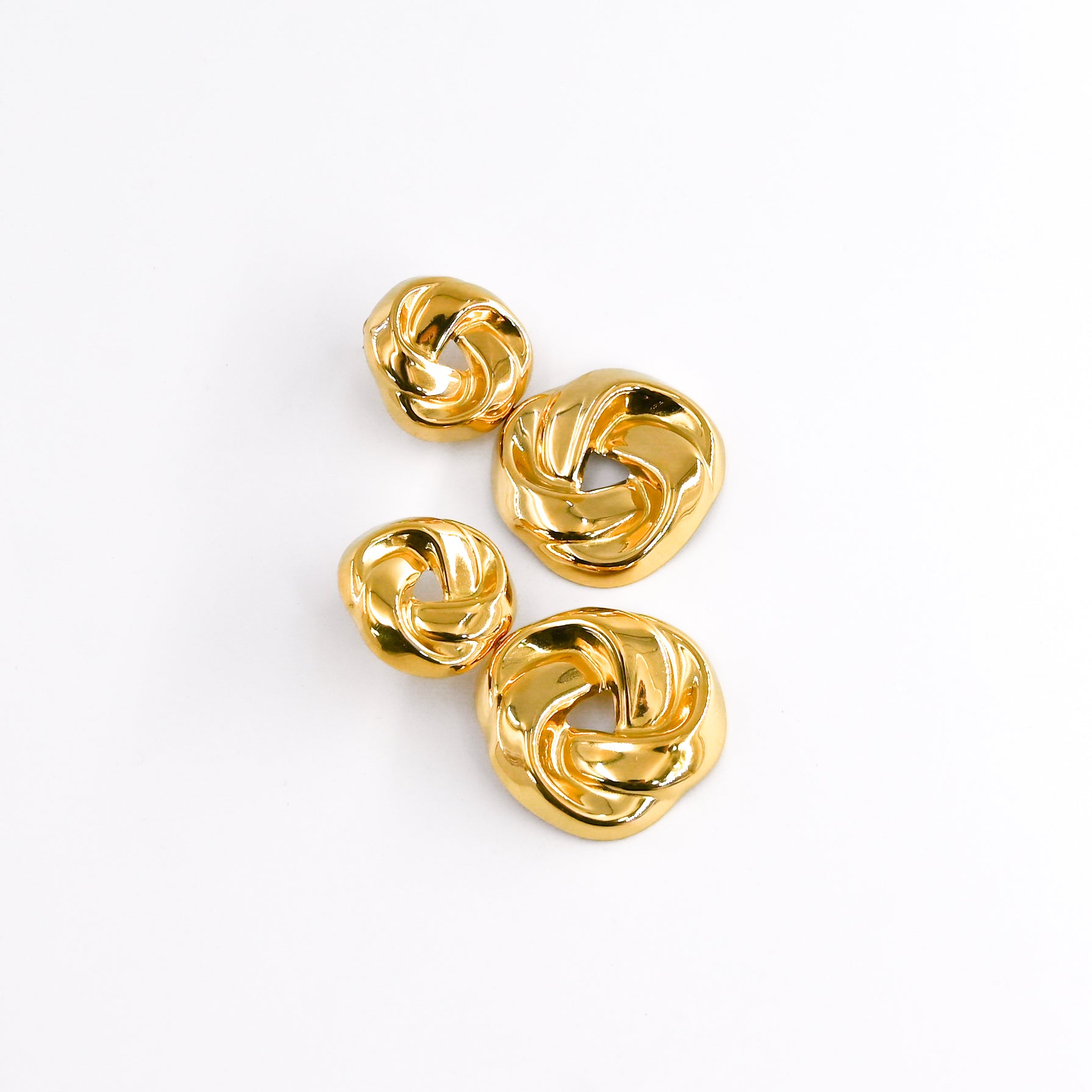 • Boucles d'oreilles pendantes composées de deux empiècements torsadés dorés, en acier inoxyable